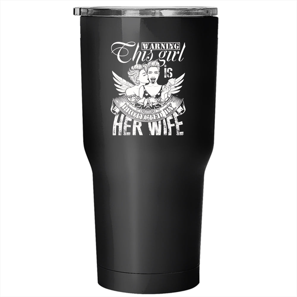 This Girl Is Protected By Her Wife Tumbler 30 oz Stainless Steel, Cute Gift For Les Travel Mug