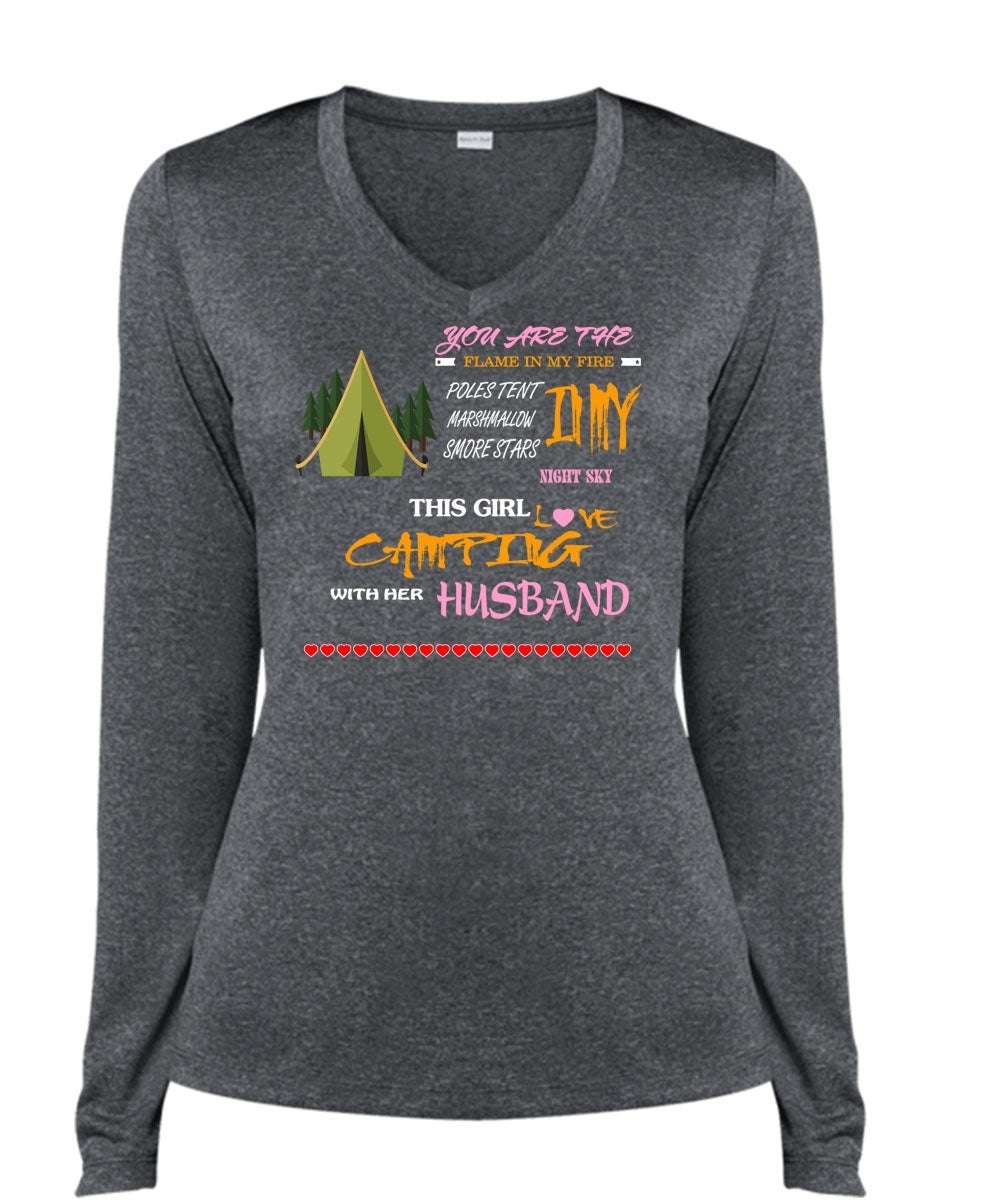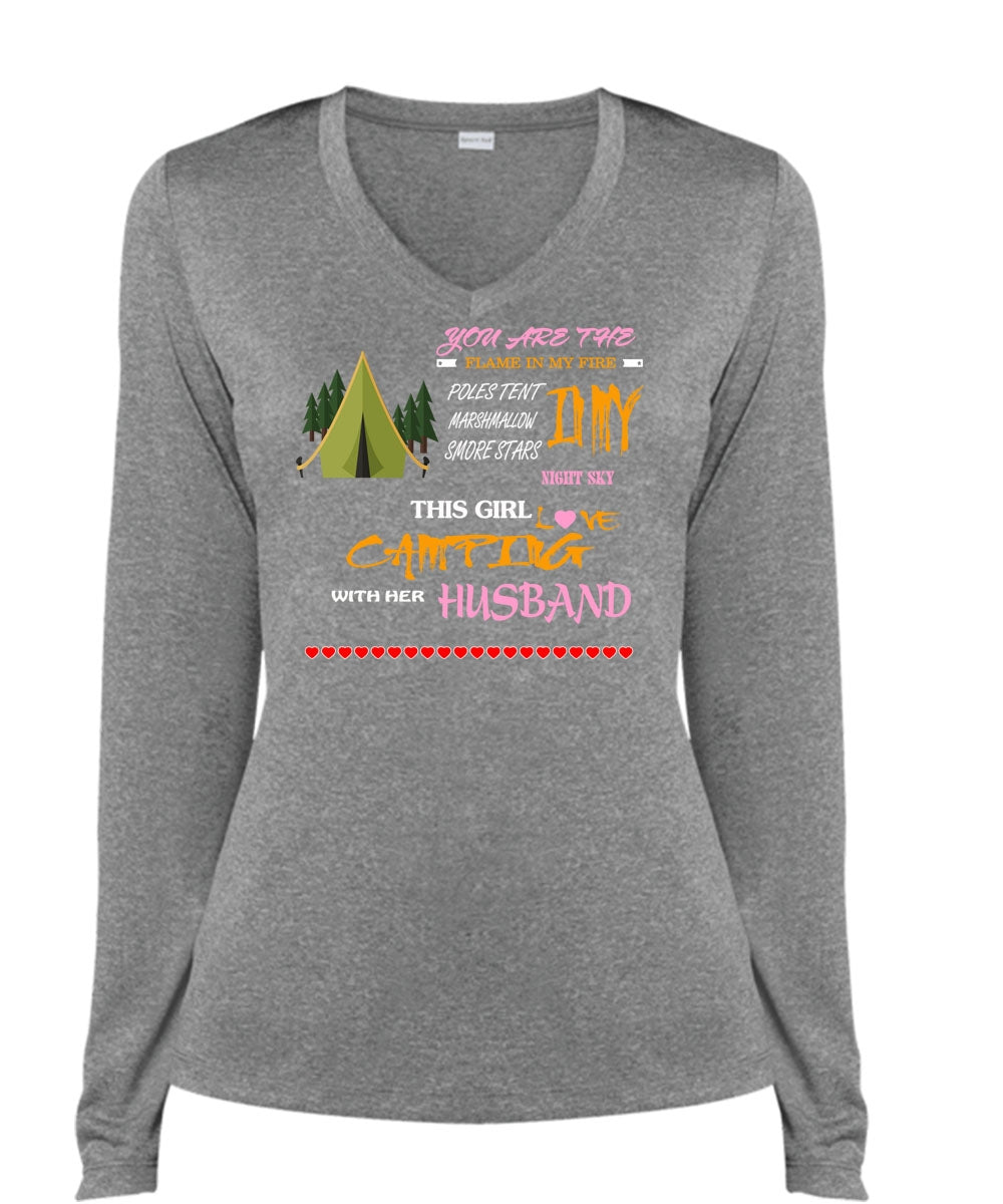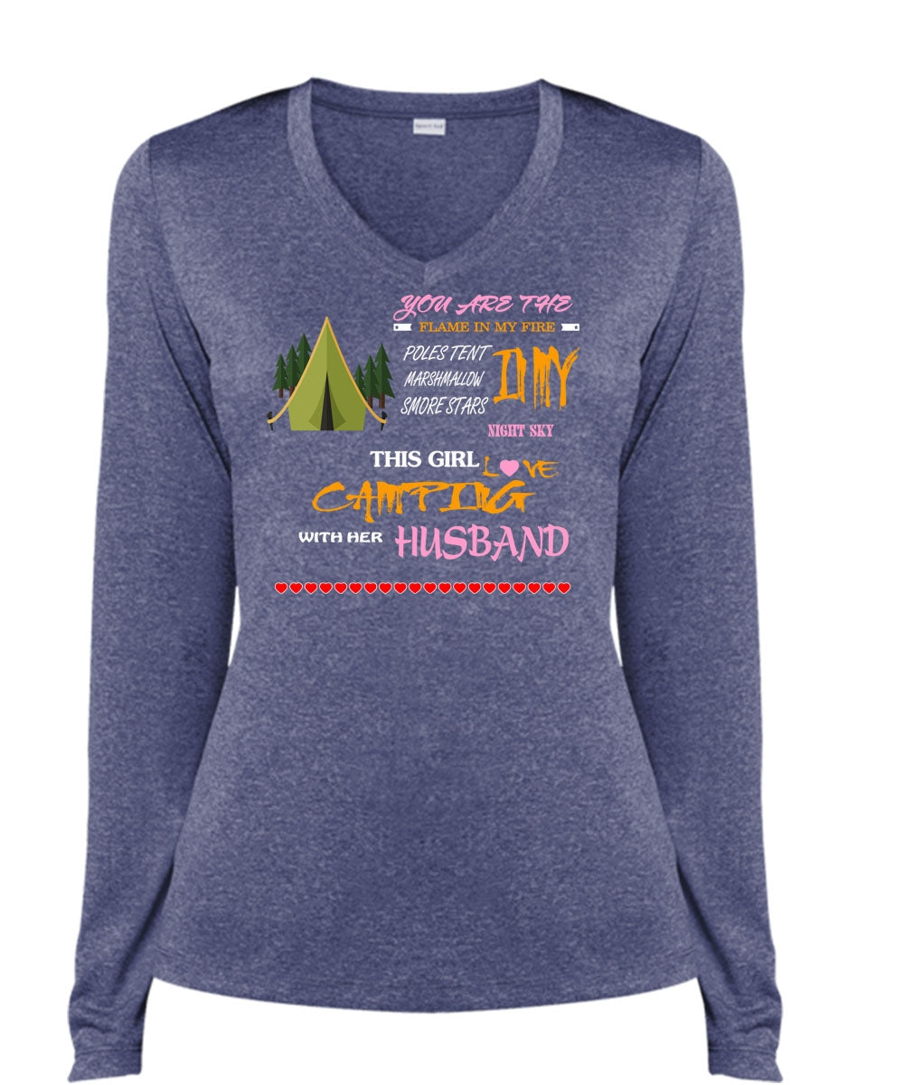 This Girl Love Camping With Her Husband T Shirt, I Love My Life T Shirt (Ladies LS Heather V-Neck)