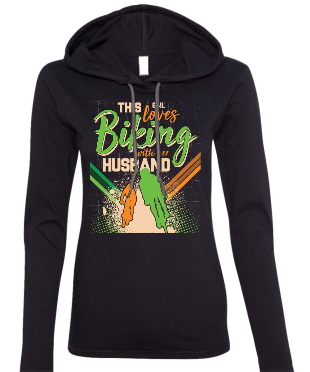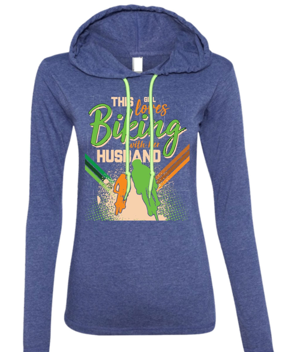 This Girl Loves Biking With Her Husband T Shirt, I Love Biking T Shirt (Anvil Ladies Ringspun Hooded)