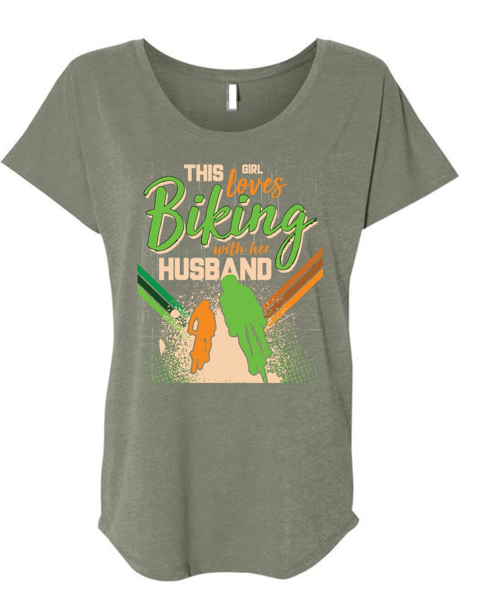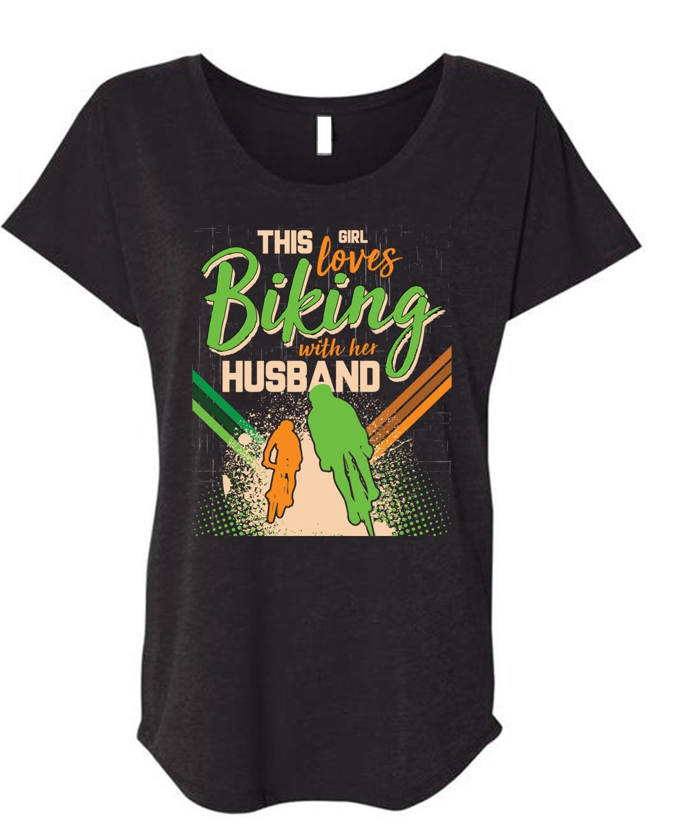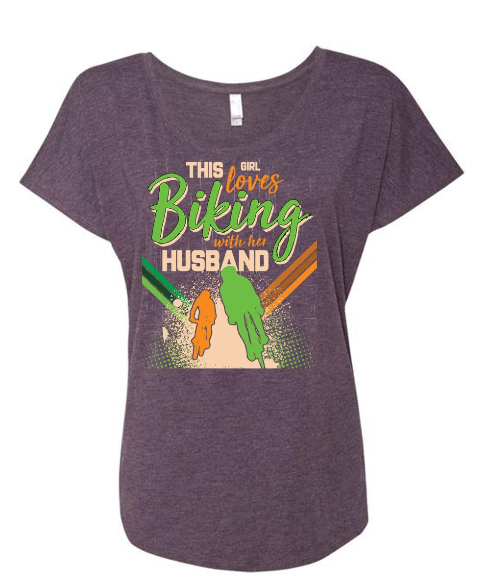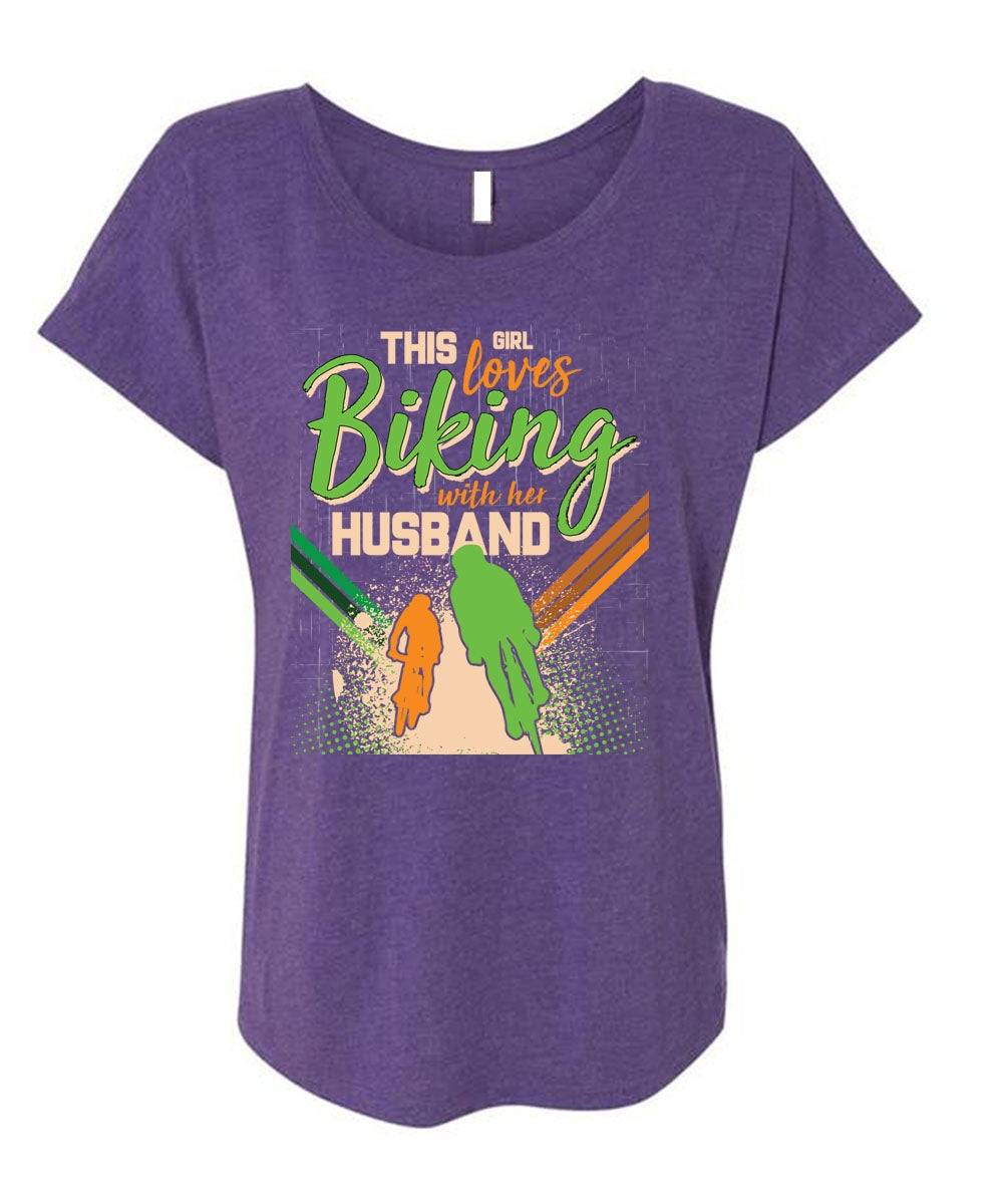 This Girl Loves Biking With Her Husband T Shirt, I Love Biking T Shirt, Cool Shirt (Ladies' Triblend Dolman Sleeve)