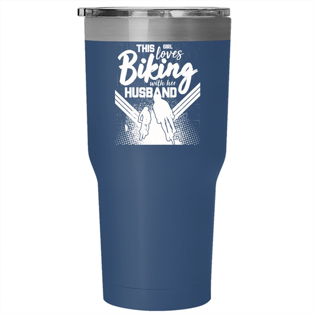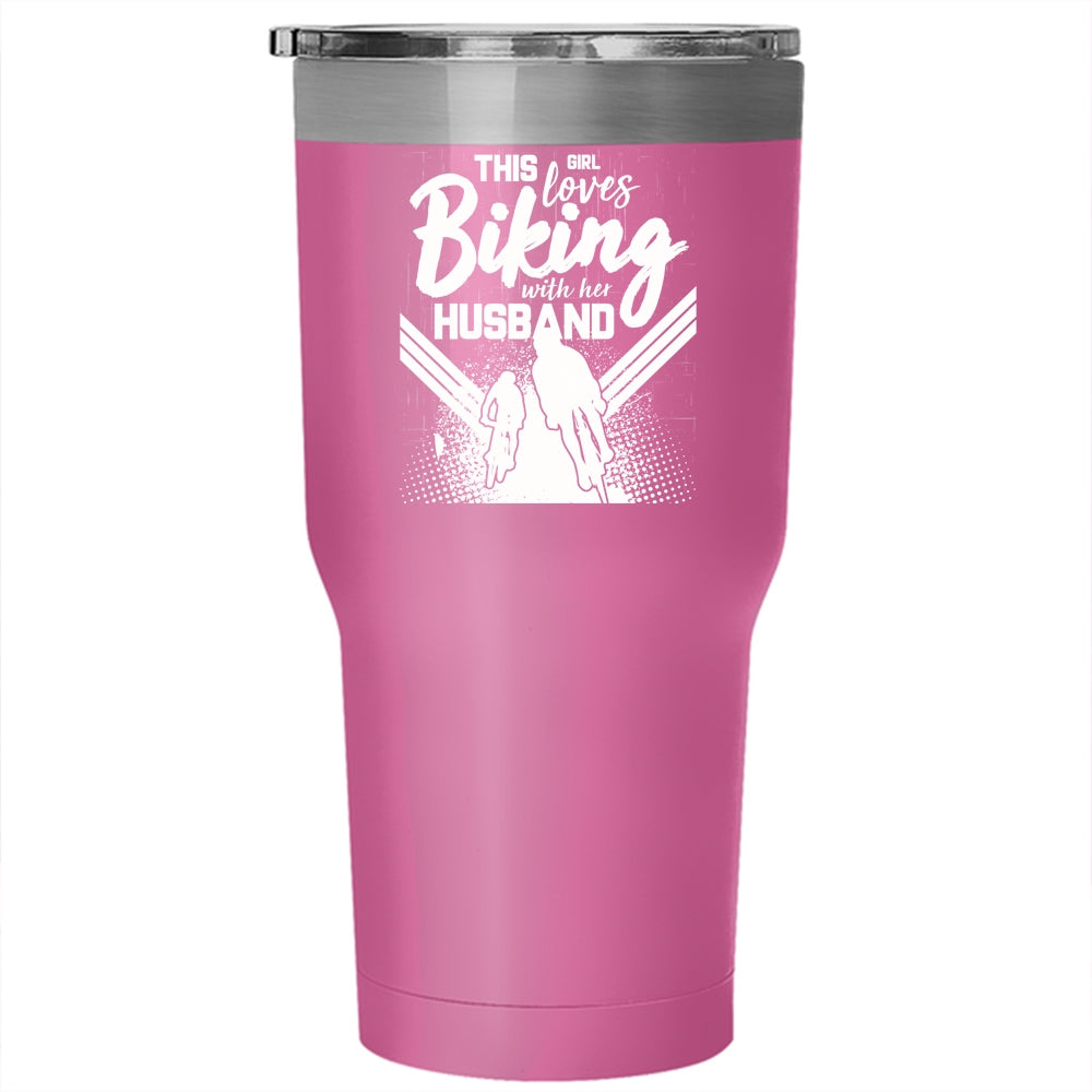 This Girl Loves Biking With Her Husband Tumbler 30 oz Stainless Steel, Cute Love Travel Mug