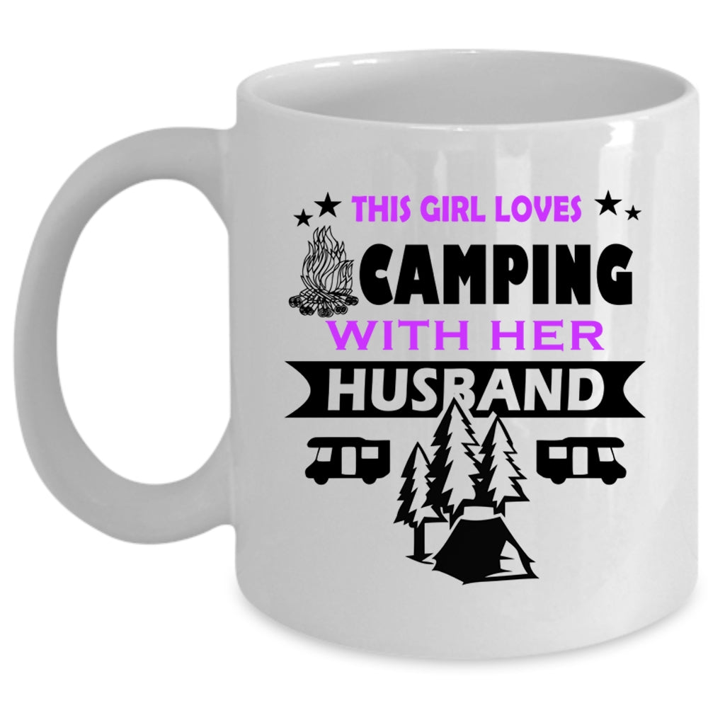 This Girl Loves Camping With Her Husband Mug, Camping Cup (Coffee Mug - White)