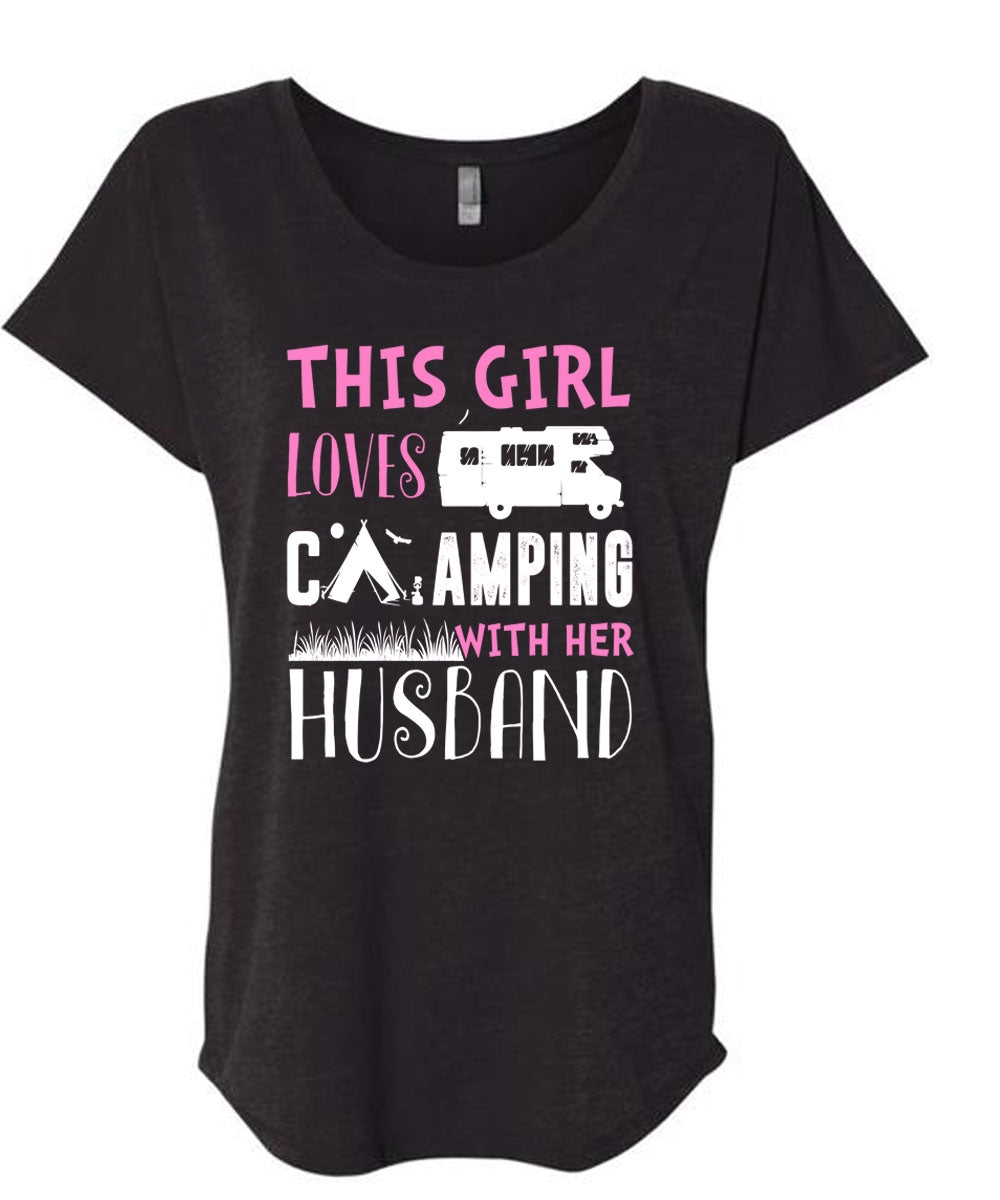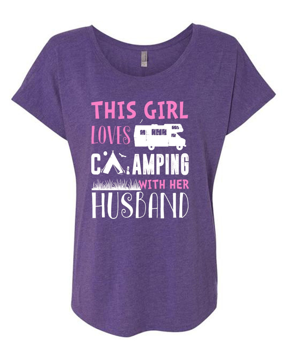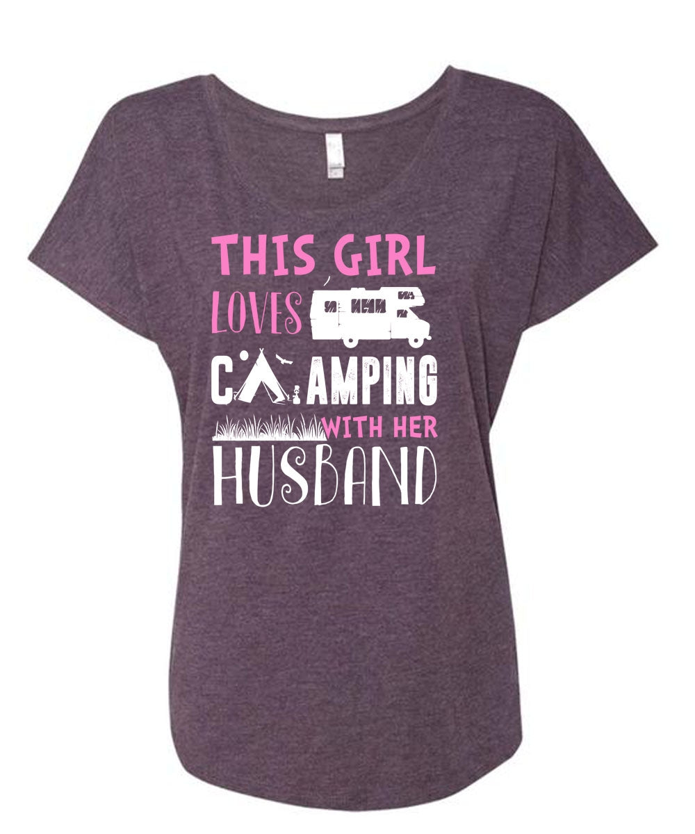 This Girl Loves Camping With Her Husband T Shirt, Being A Camper T Shirt, Cool Shirt (Ladies' Triblend Dolman Sleeve)