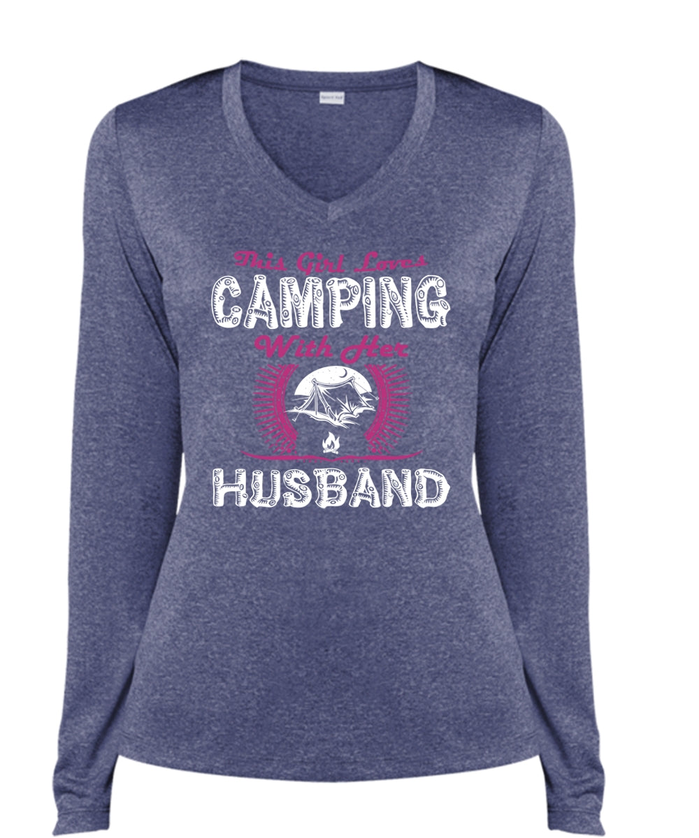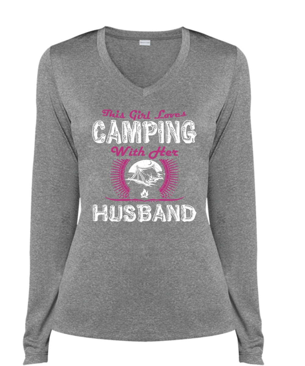 This Girl Loves Camping With Her Husband T Shirt, Travel T Shirt (Ladies LS Heather V-Neck)
