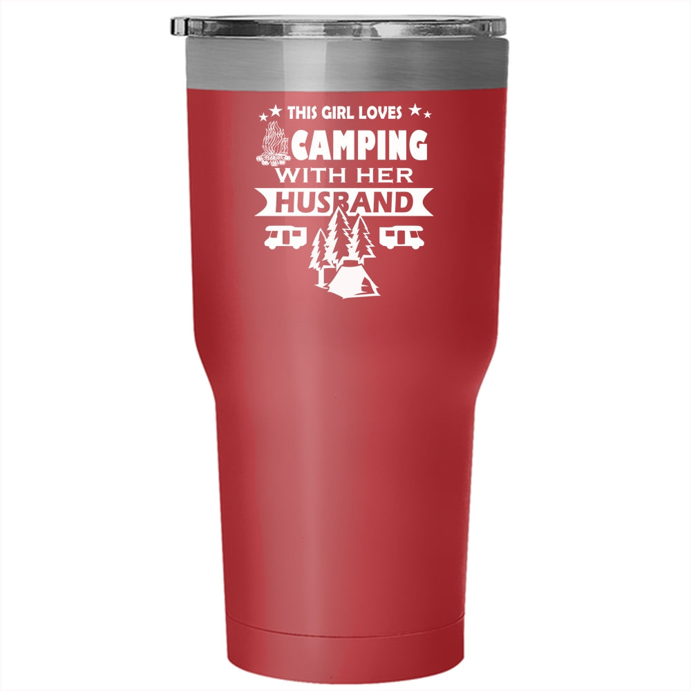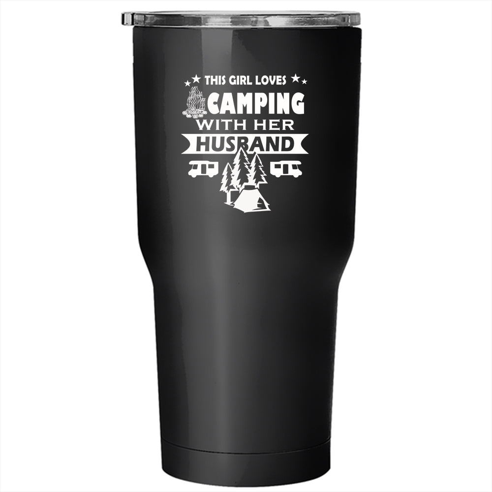 This Girl Loves Camping With Her Husband Tumbler 30 oz Stainless Steel, Cute Wife Travel Mug