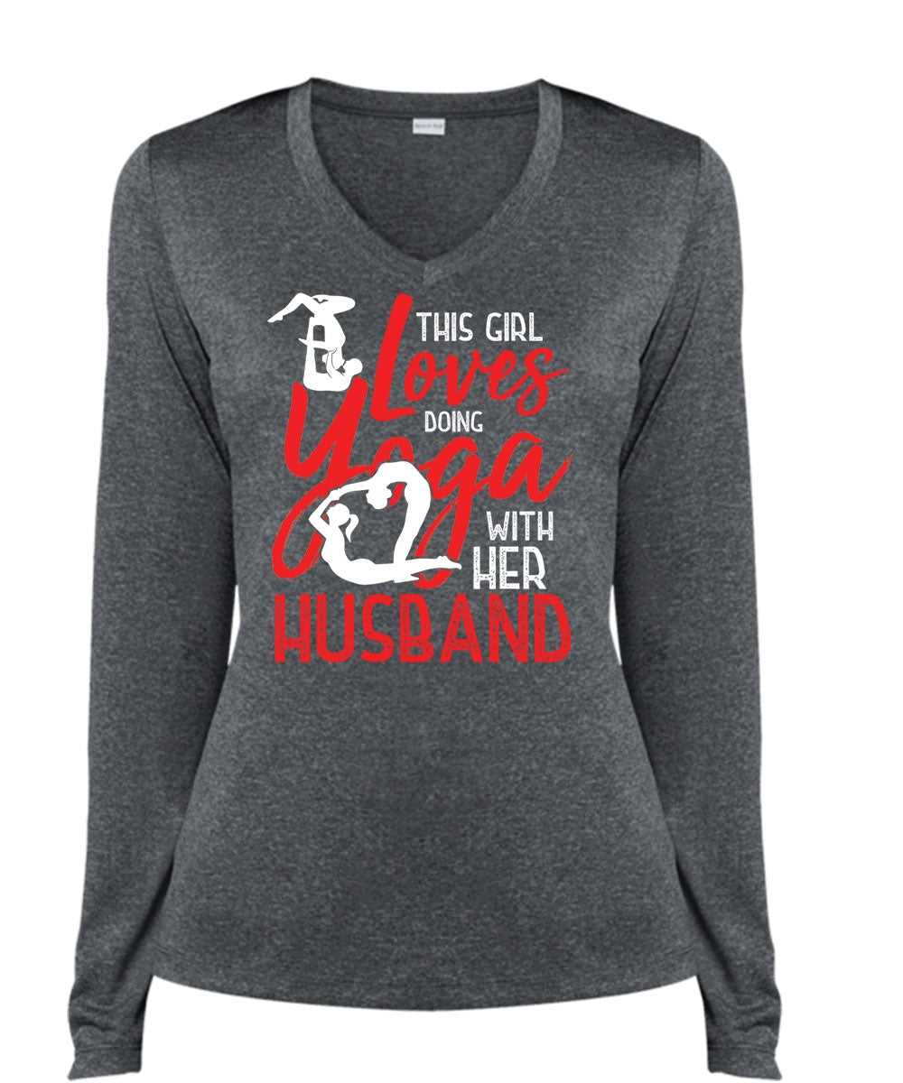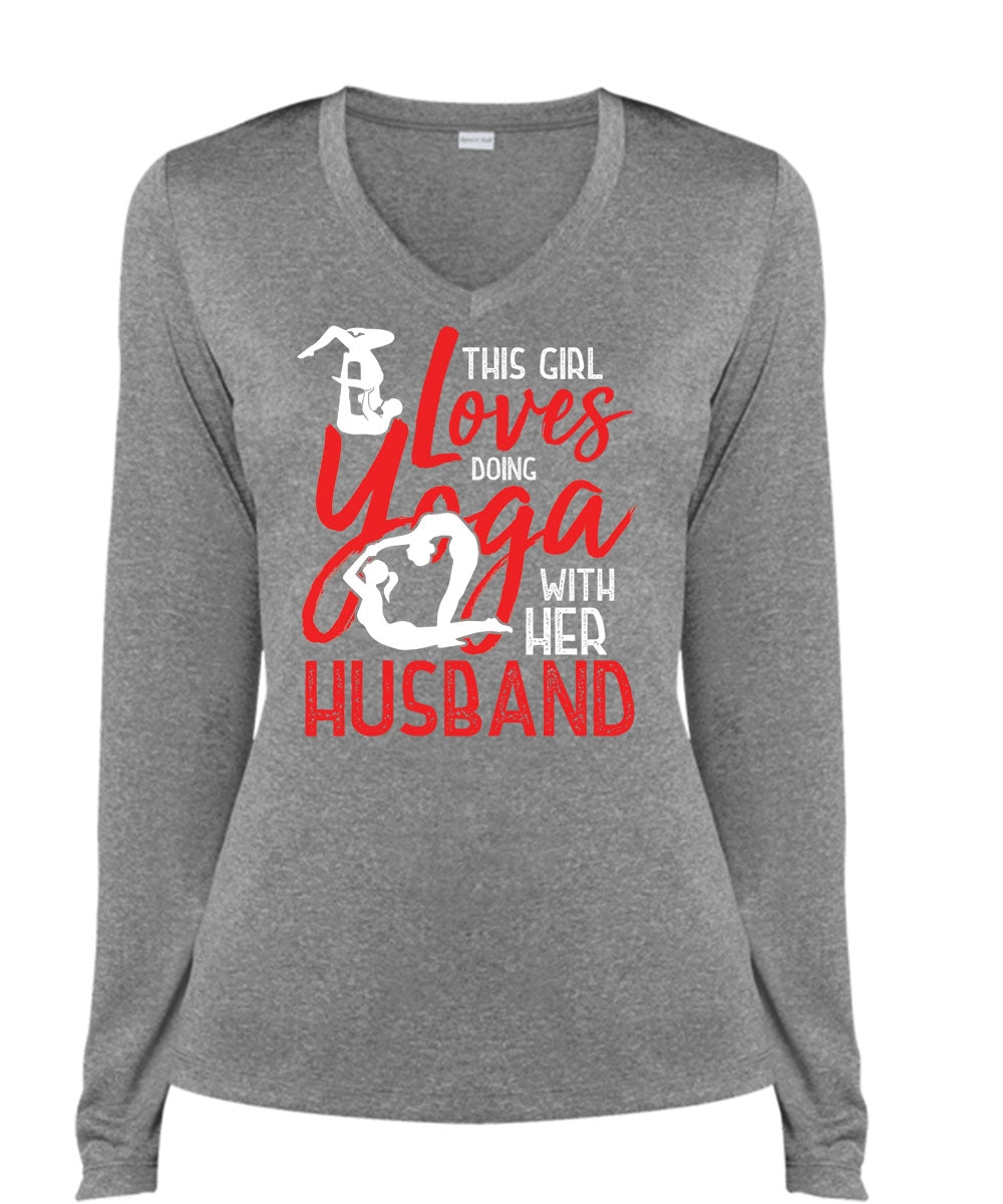 This Girl Loves Doing Yoga With Her Husband T Shirt, Being A Gym T Shirt, Cool Shirt (Ladies LS Heather V-Neck)