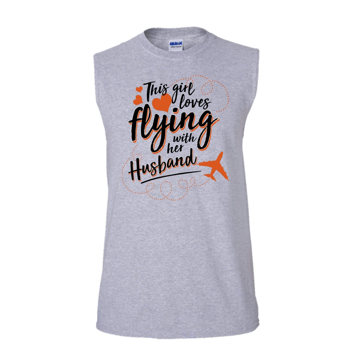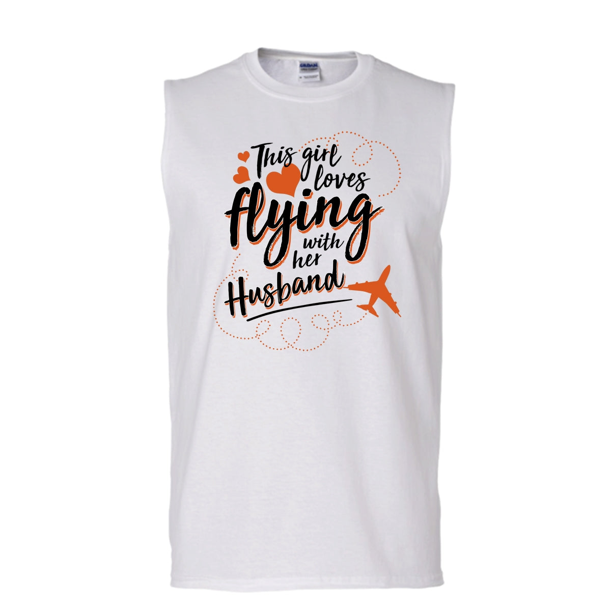 This Girl Loves Flying With Her Husband T Shirt, Flying Partner T Shirt, Awesome t-shirts (Men's Cotton Sleeveless)