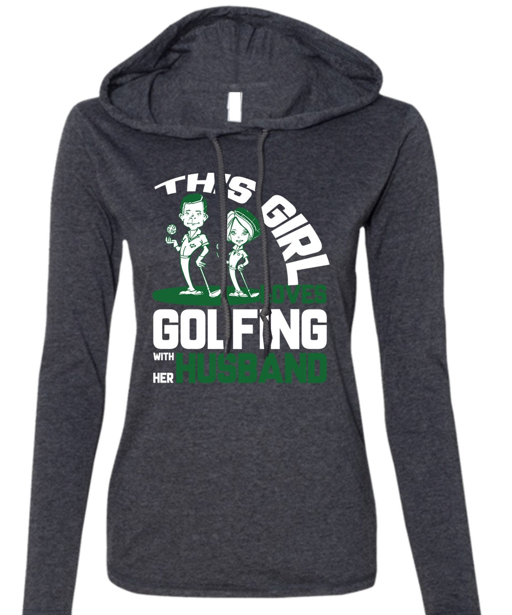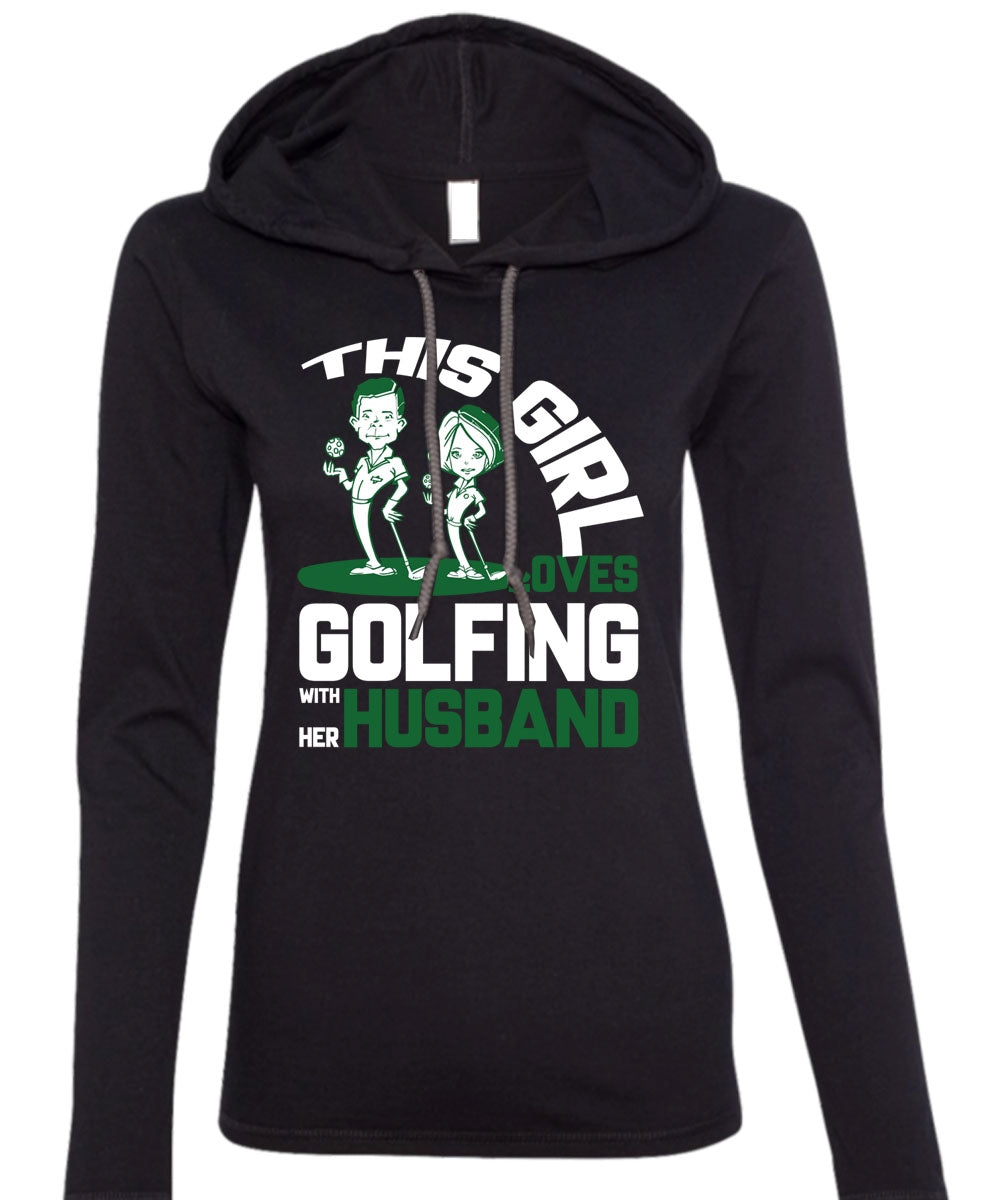This Girl Loves Golfing With Her Husband T Shirt, Being A Golfer T Shirt (Anvil Ladies Ringspun Hooded)