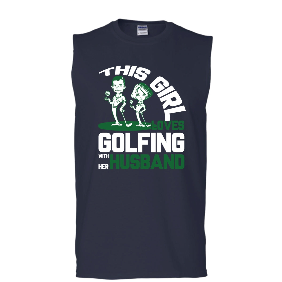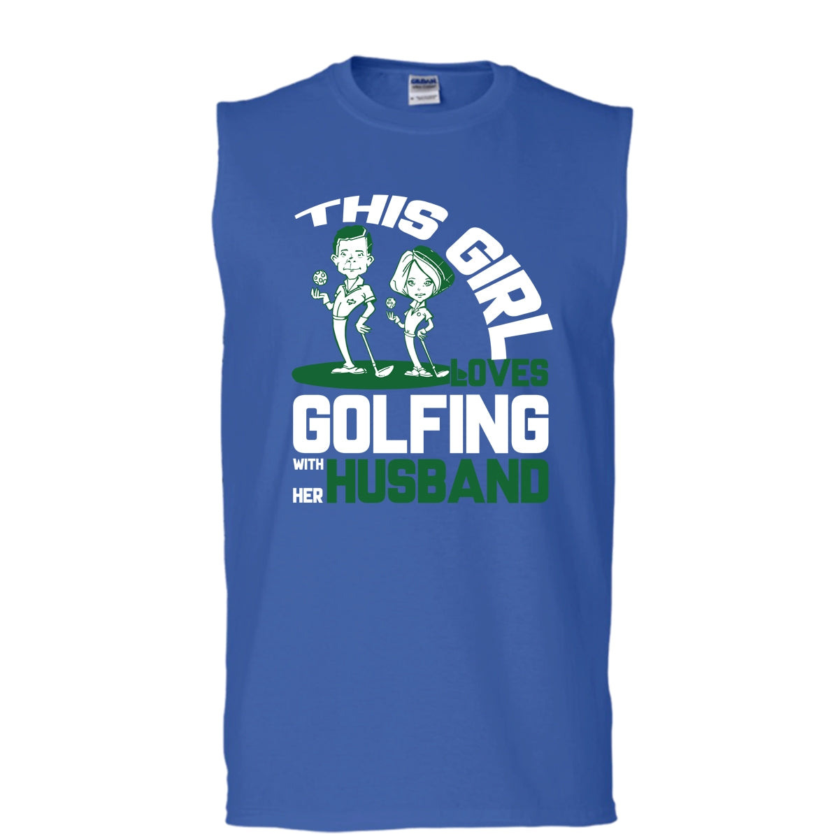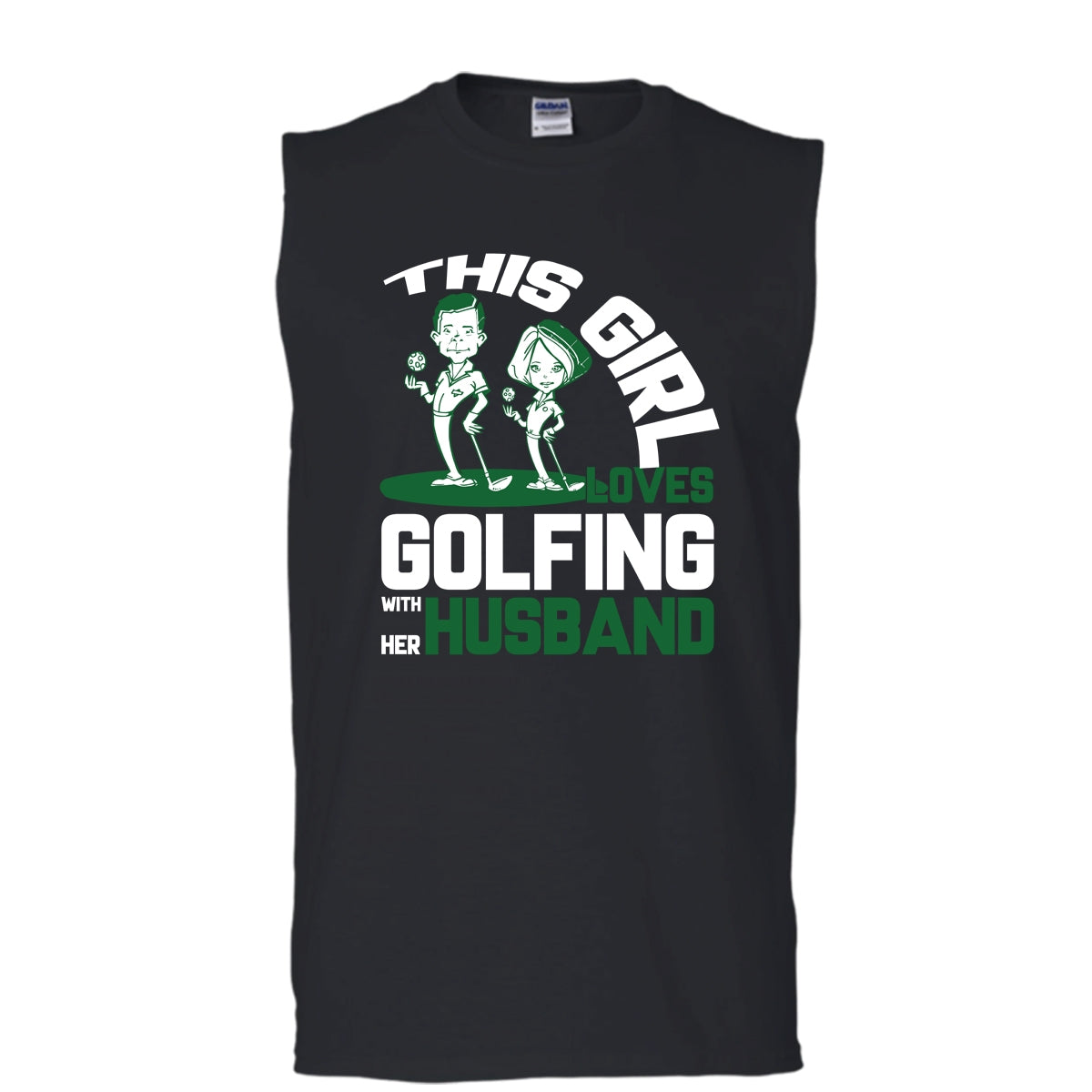 This Girl Loves Golfing With Her Husband T Shirt, I Love Golfing T Shirt, Cool T Shirt (Men's Cotton Sleeveless)