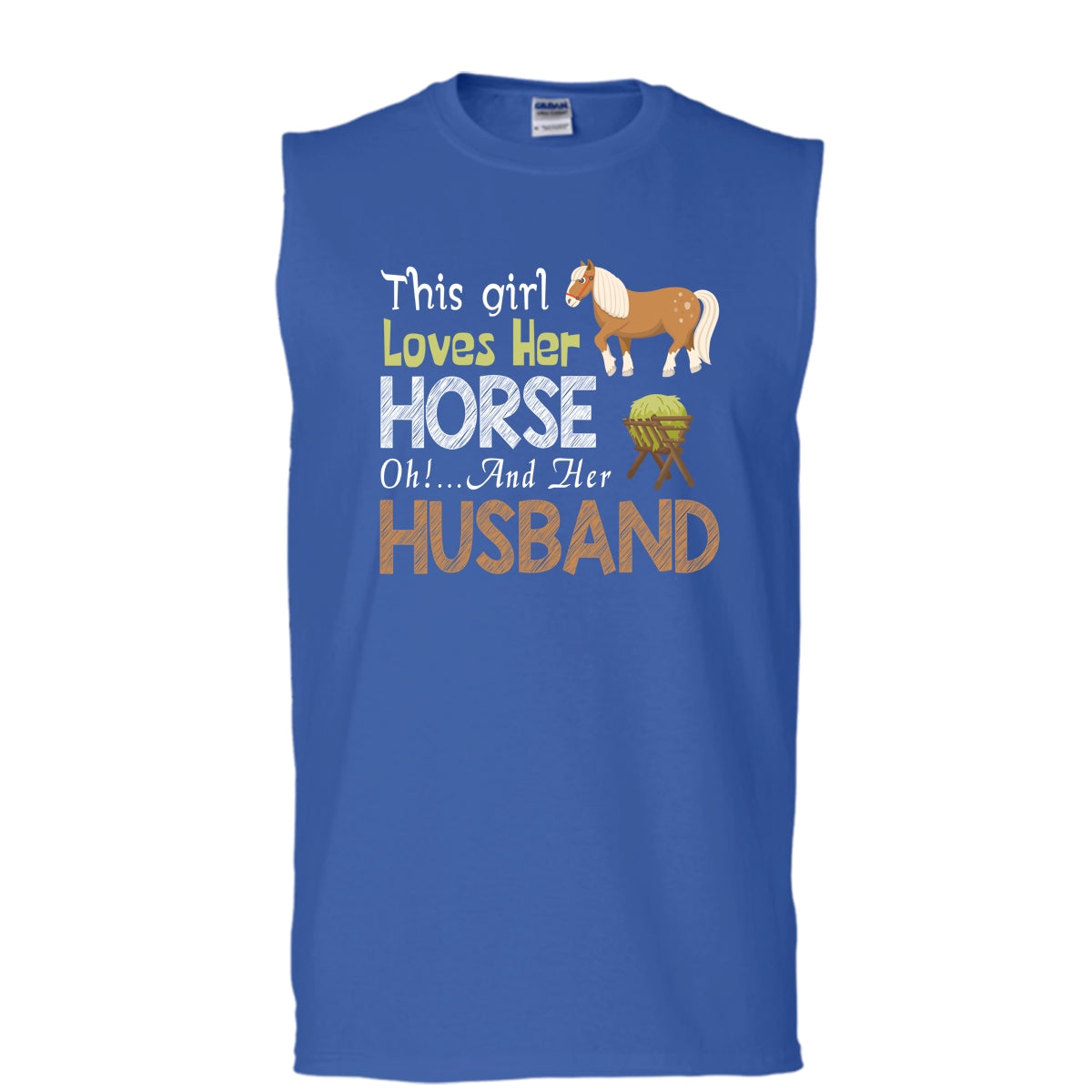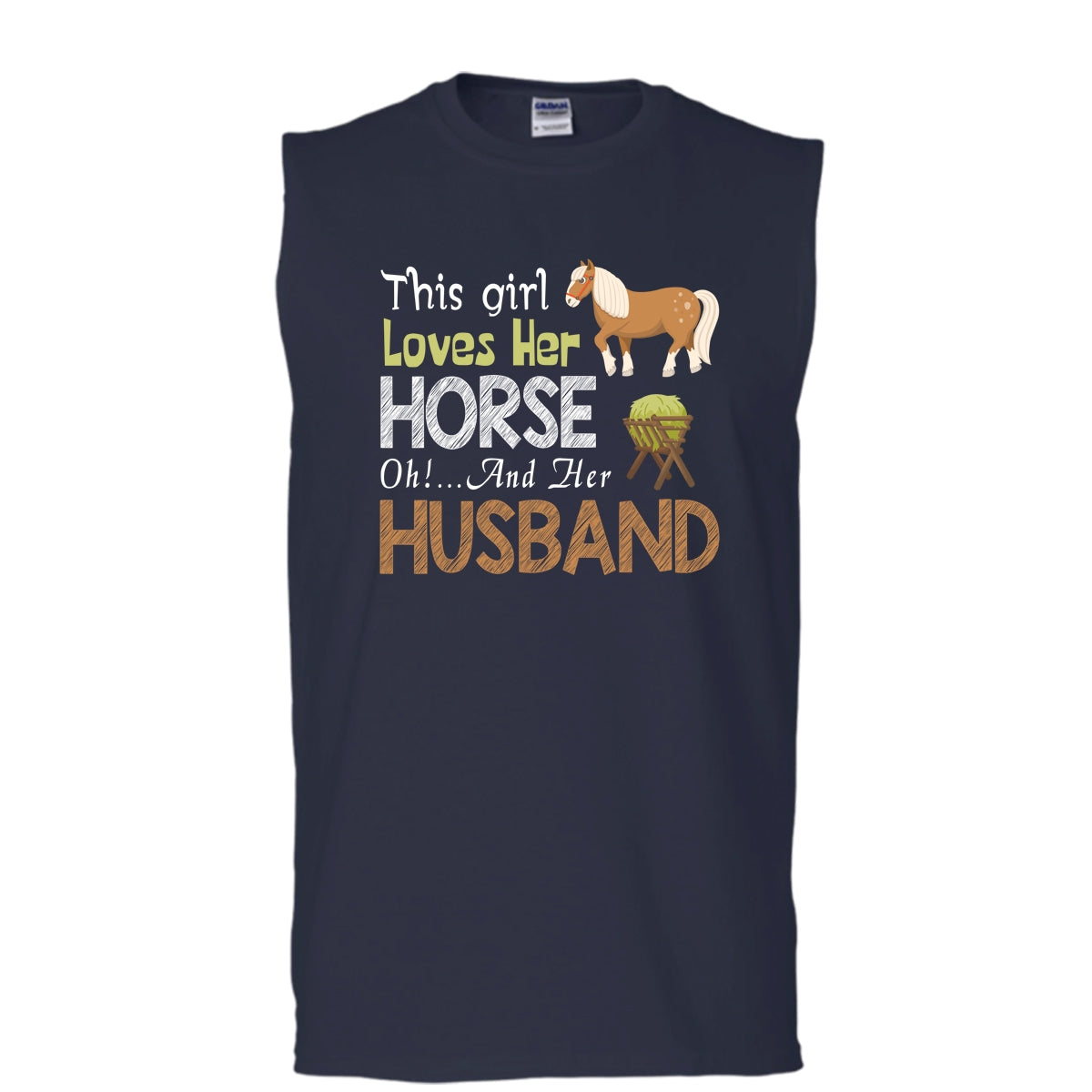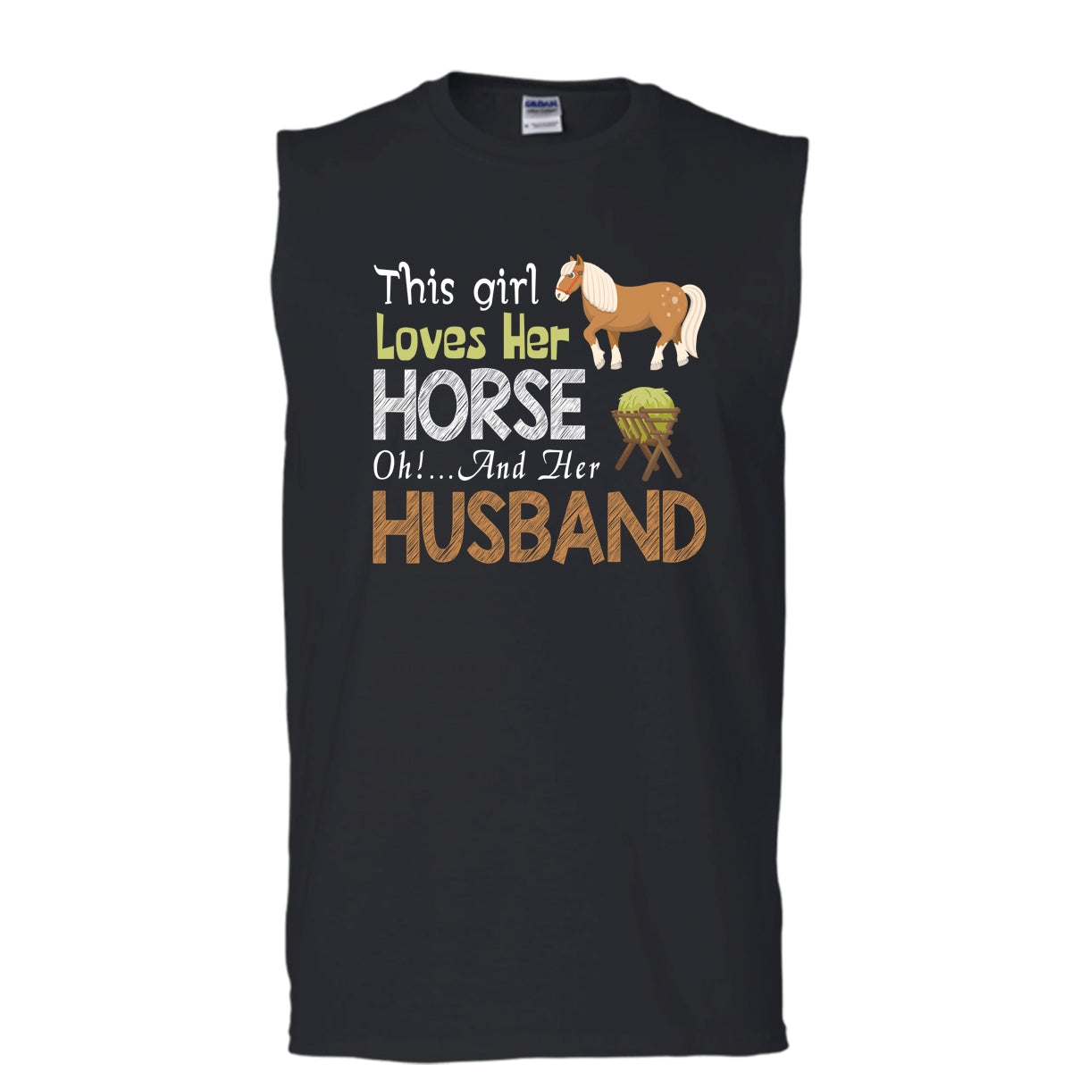 This Girl Loves Her Horse Shirt, And Loves Her Husband Shirt (Men's Cotton Sleeveless)