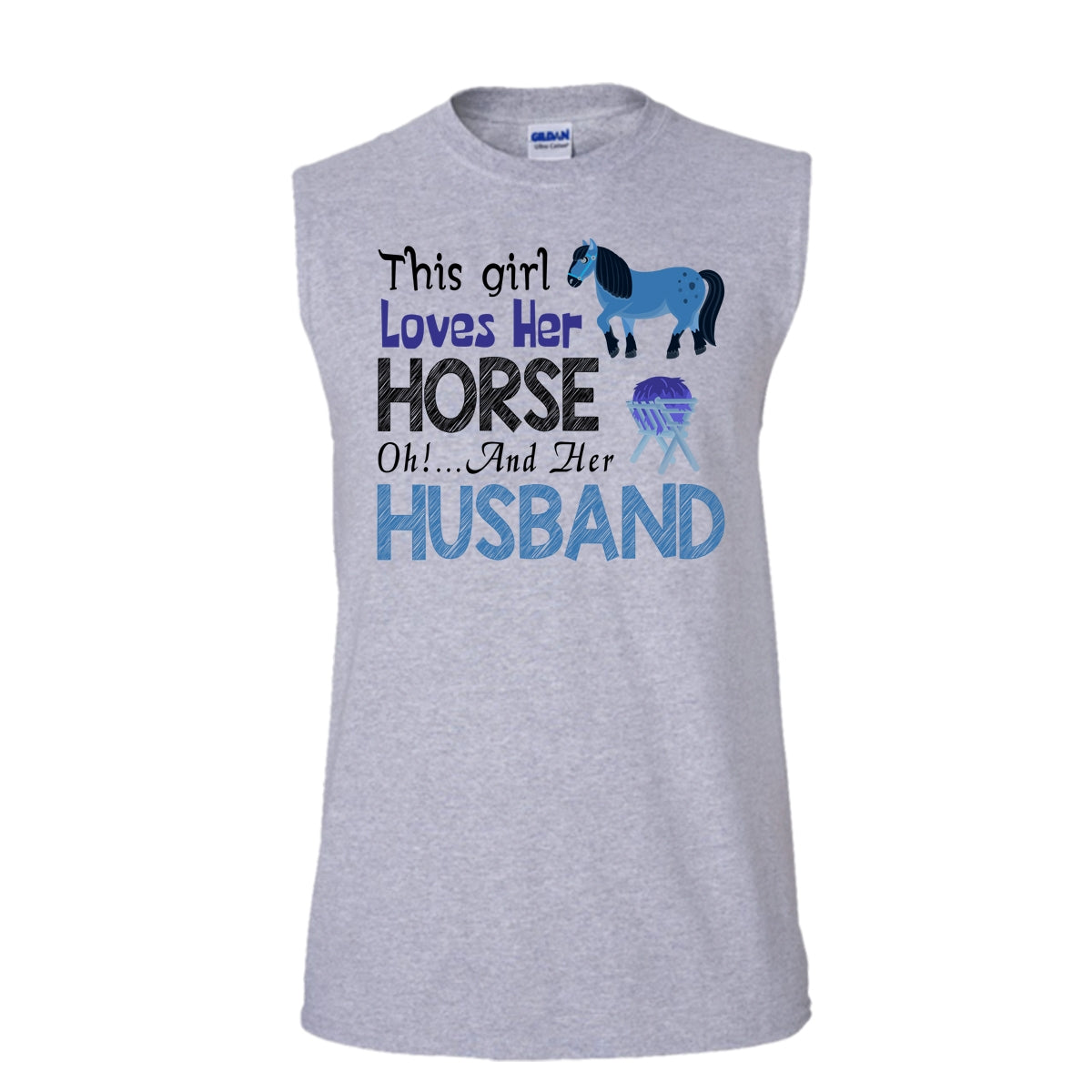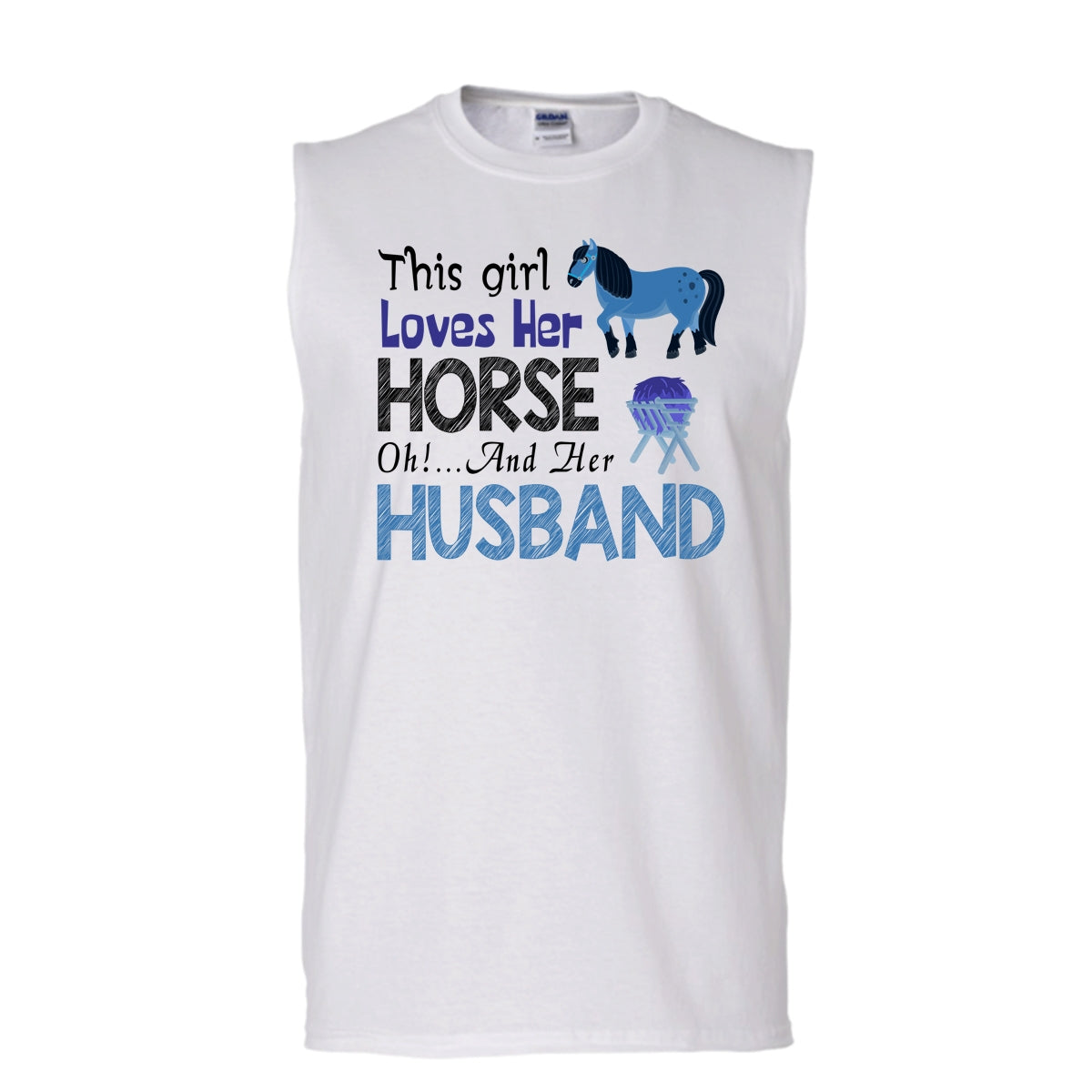 This Girl Loves Her Horse Shirt, And Loves Her Husband Shirt, Wife Shirt (Men's Cotton Sleeveless)