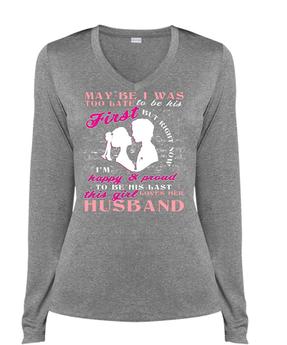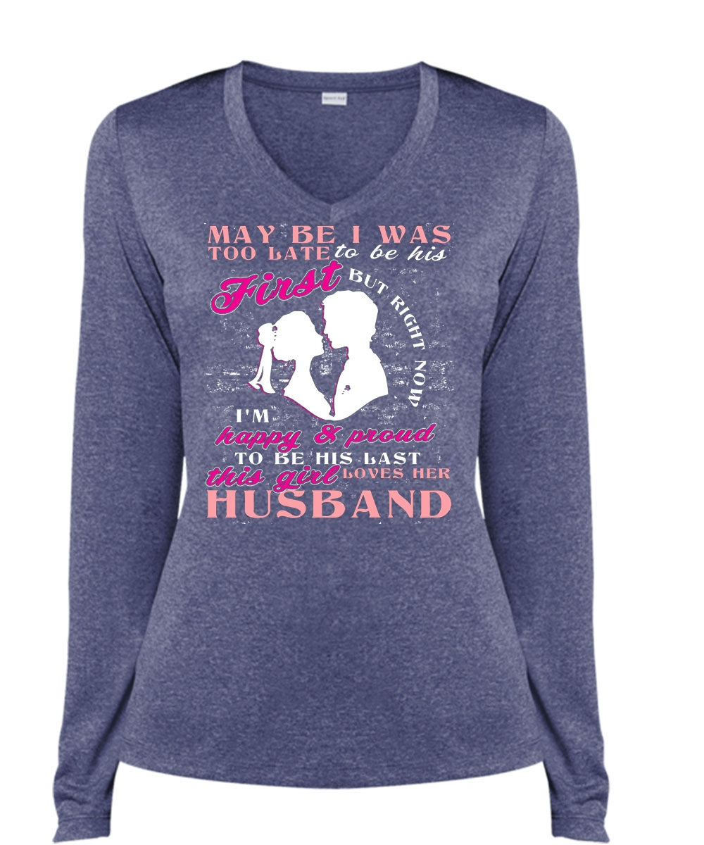 This Girl Loves Her Husband T Shirt, I Love Husband T Shirt, Cool Shirt (Ladies LS Heather V-Neck)
