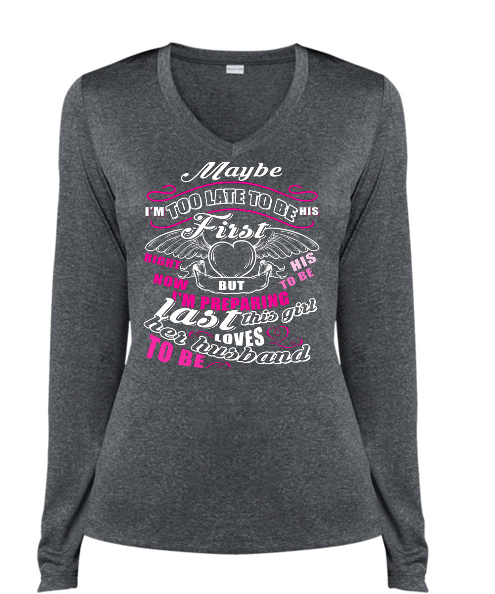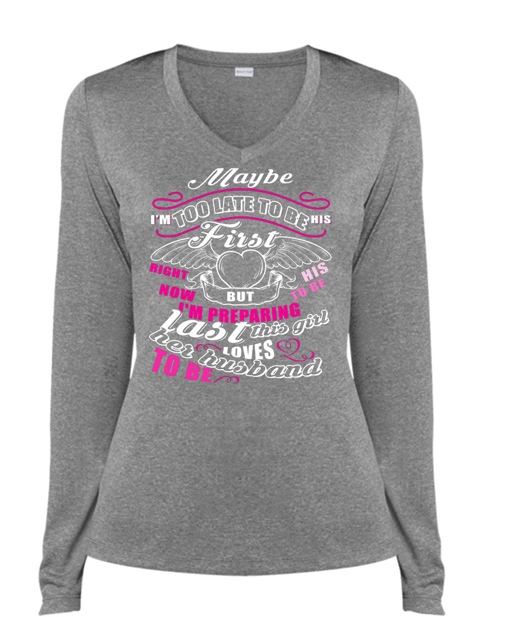 This Girl Loves Her Husband T Shirt, I'm Too Late To Be His First T Shirt, Cool Shirt (Ladies LS Heather V-Neck)