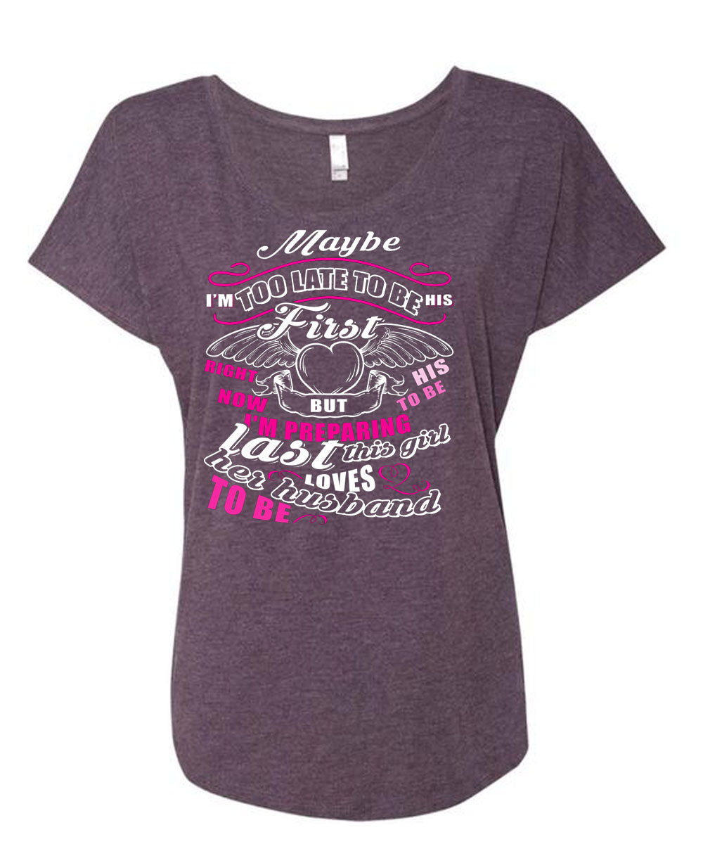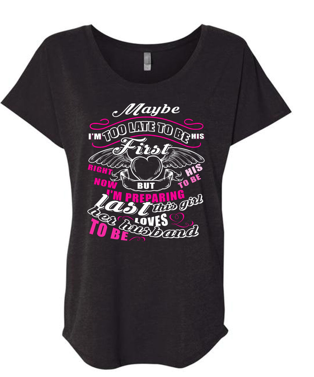 This Girl Loves Her Husband T Shirt, I'm Too Late To Be His First T Shirt, Cool Shirt (Ladies' Triblend Dolman Sleeve)