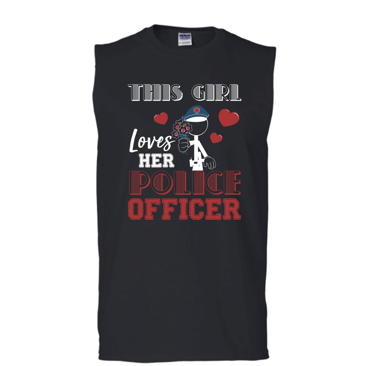 This Girl Loves Her Police Officer T Shirt, Police Officer's Wife T Shirt, Cool T Shirt (Men's Cotton Sleeveless)