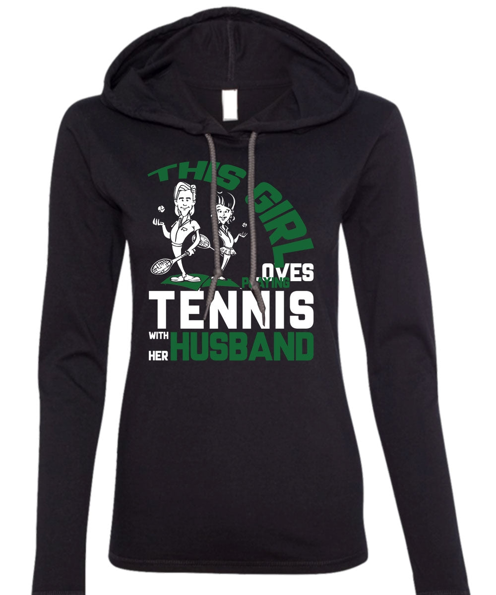 This Girl Loves Playing Tennis With Her Husband T Shirt, Being A Tennis Player T Shirt (Anvil Ladies Ringspun Hooded)