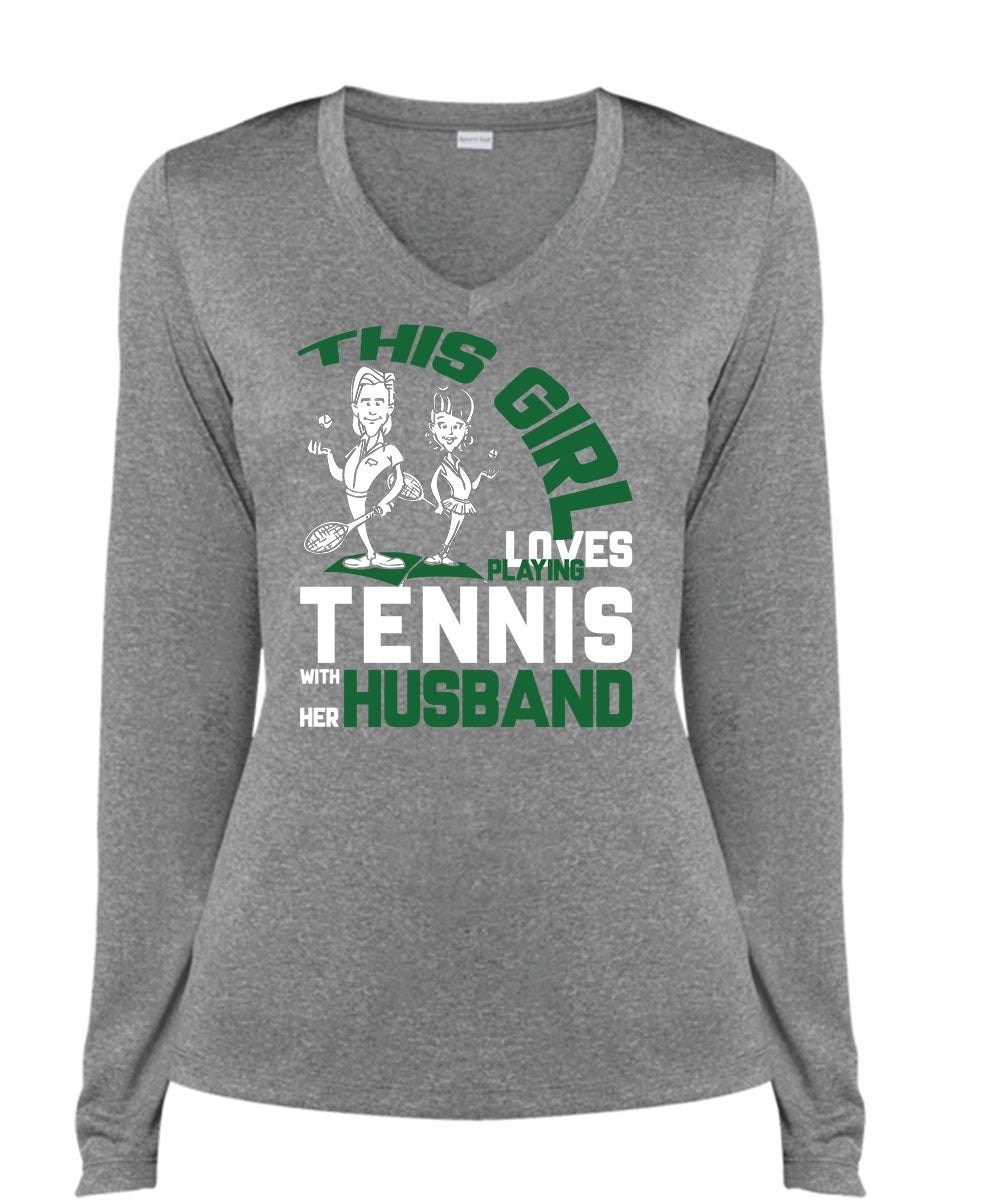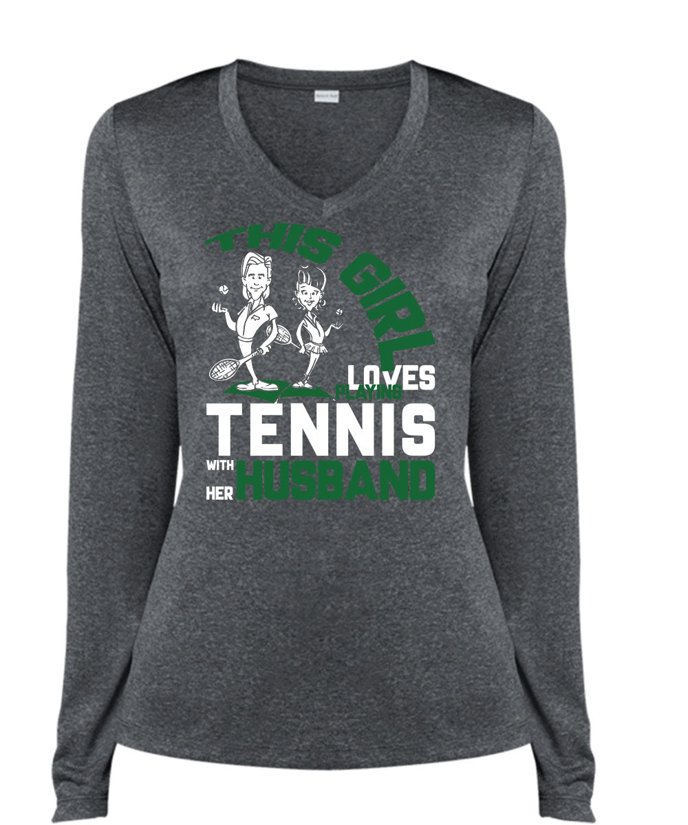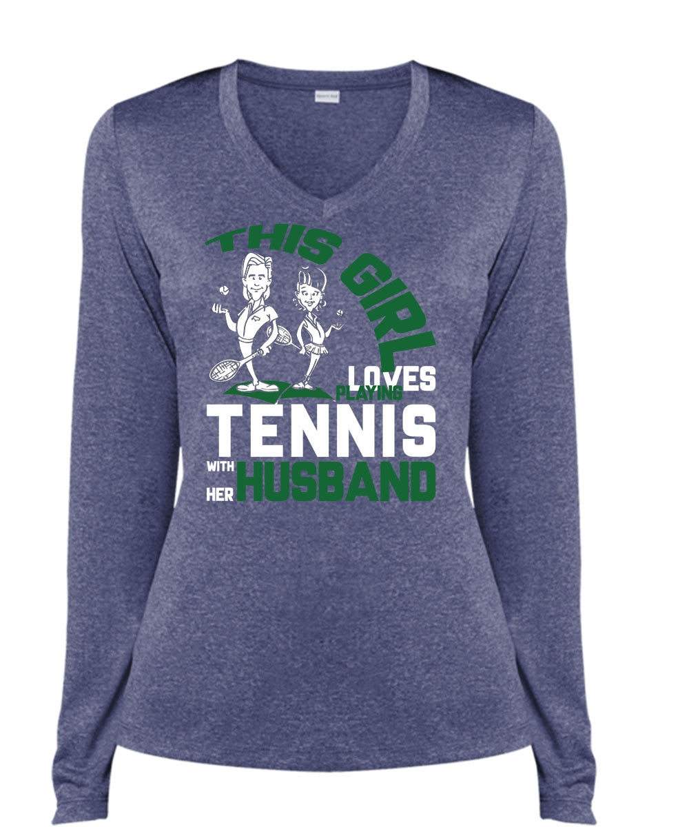 This Girl Loves Playing Tennis With Her Husband T Shirt, Being A Tennis Player T Shirt, Cool Shirt (Ladies LS Heather V-Neck)