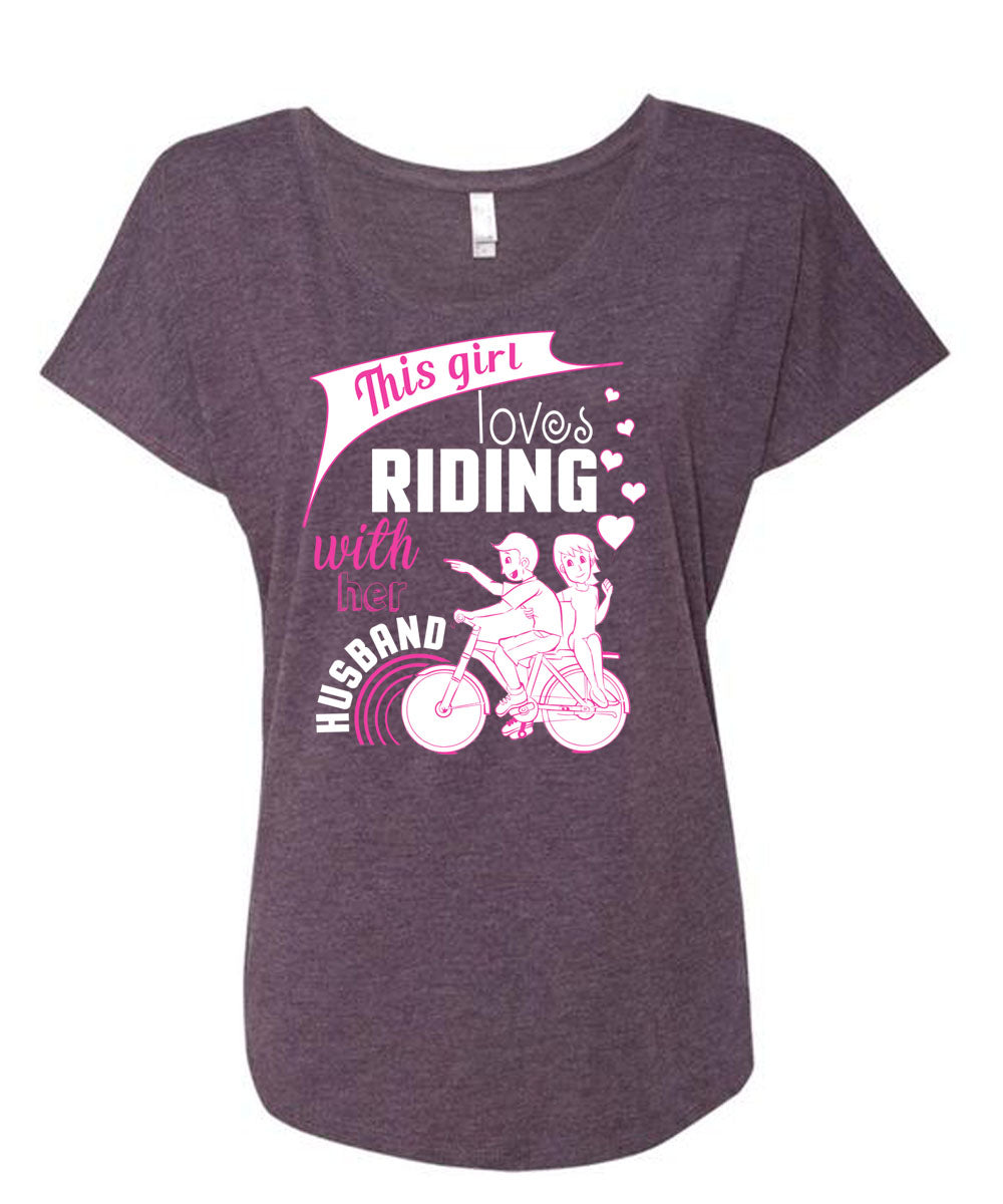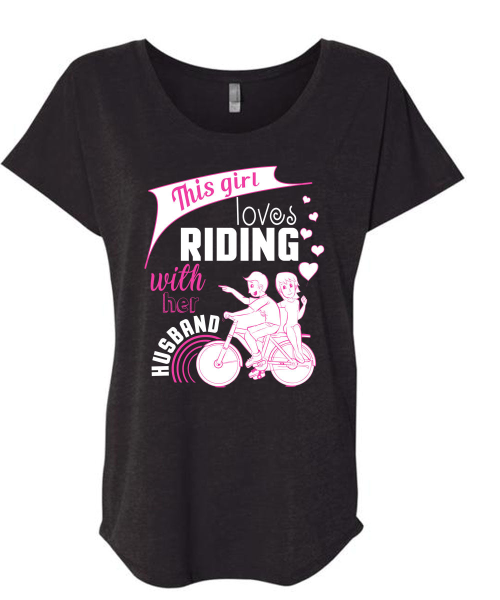 This Girl Loves Riding With Her Husband T Shirt, Being A Biker T Shirt, Cool Shirt (Ladies' Triblend Dolman Sleeve)