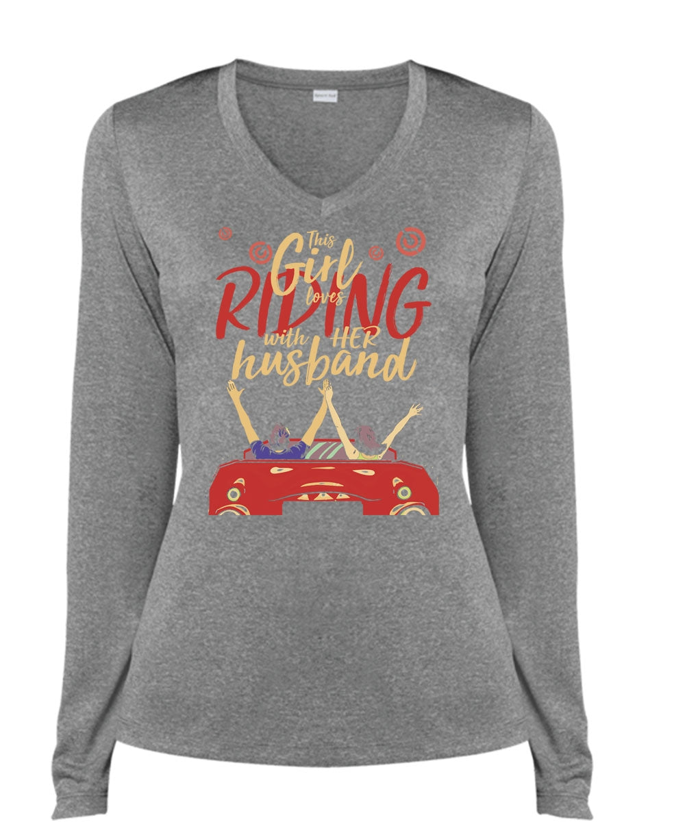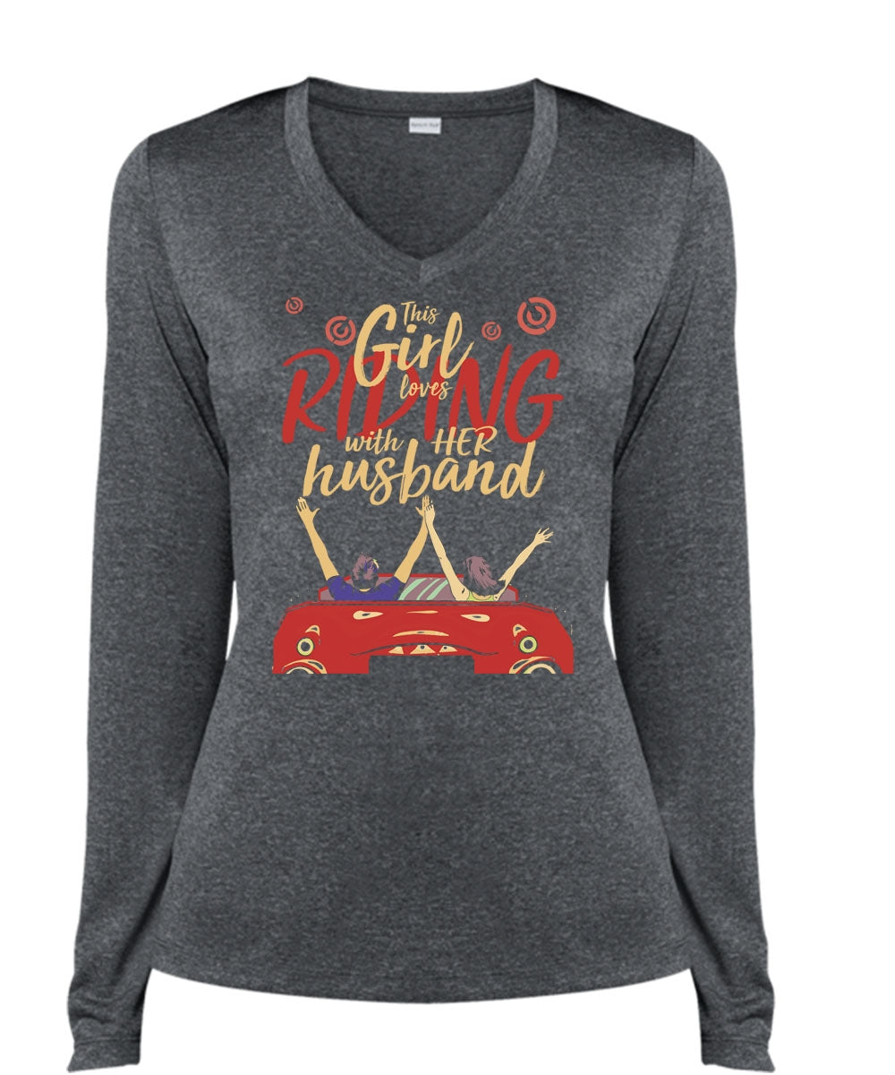 This Girl Loves Riding With Her Husband T Shirt, Being A Driver T Shirt, Cool Shirt (Ladies LS Heather V-Neck)