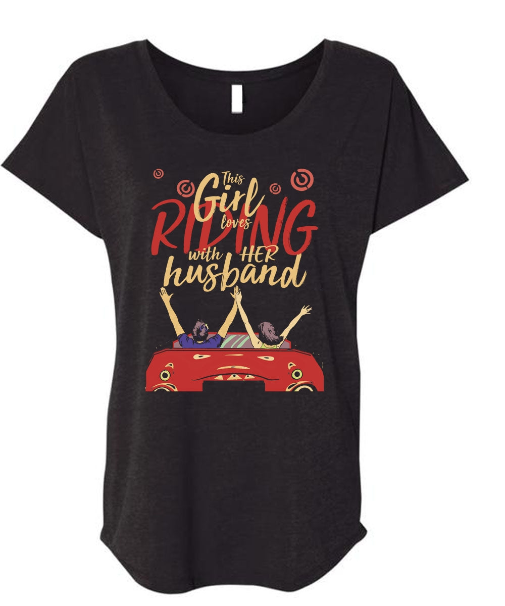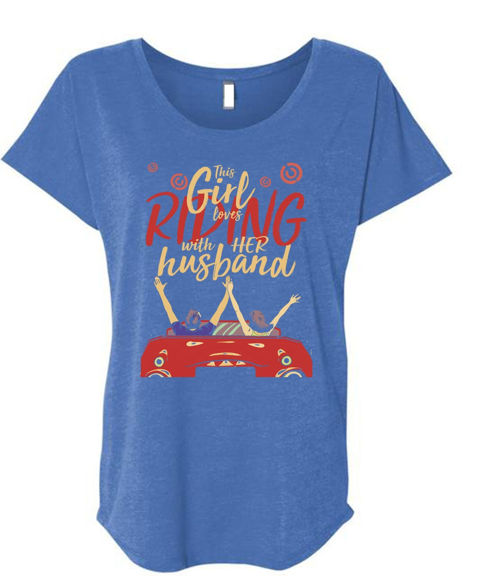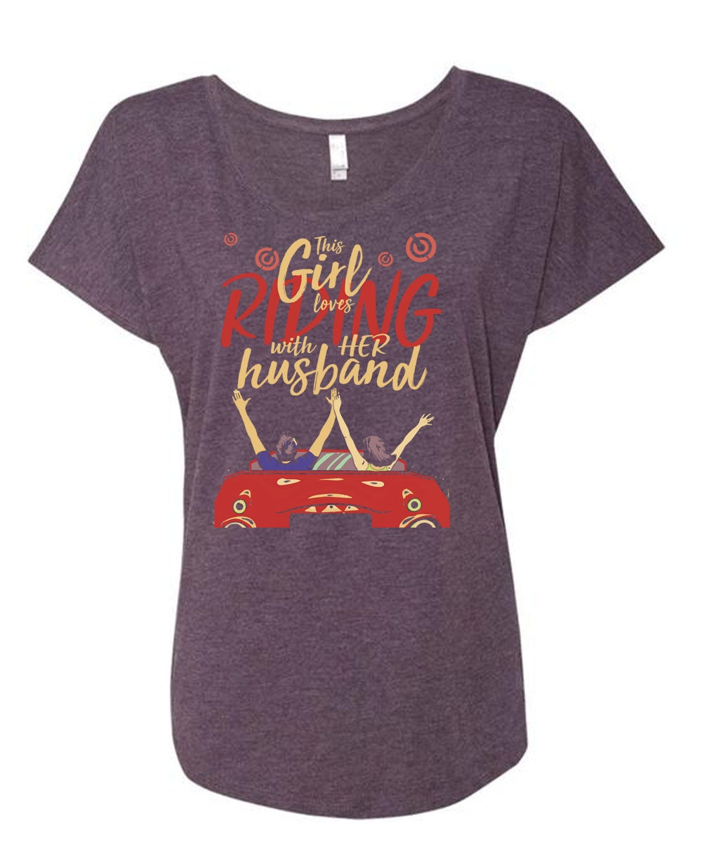 This Girl Loves Riding With Her Husband T Shirt, Being A Driver T Shirt, Cool Shirt (Ladies' Triblend Dolman Sleeve)