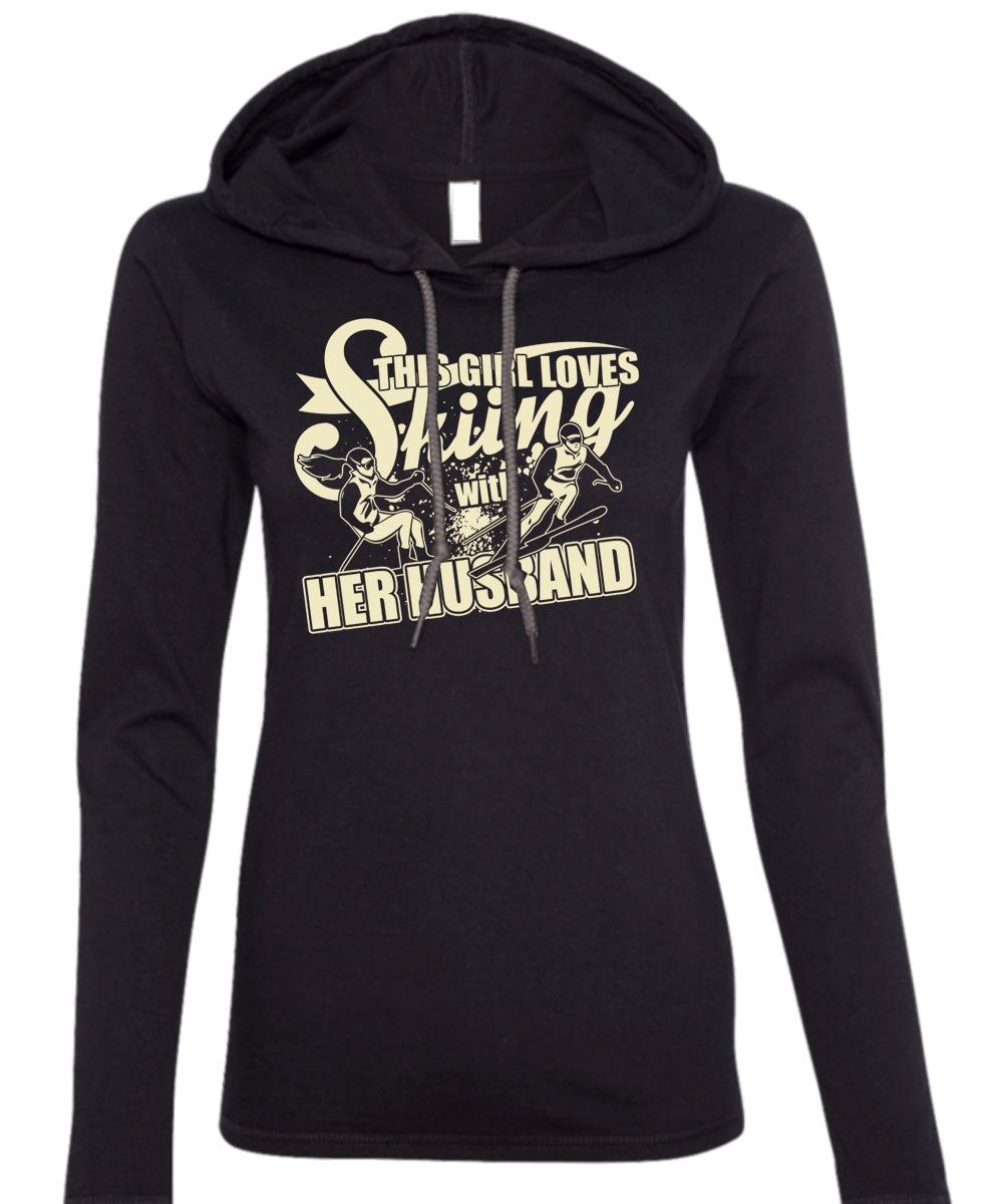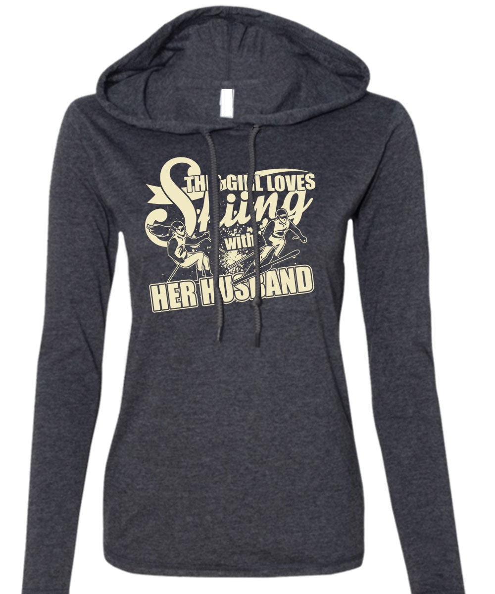This Girl Loves Skiing With Her Husband T Shirt, Being A Skier T Shirt (Anvil Ladies Ringspun Hooded)