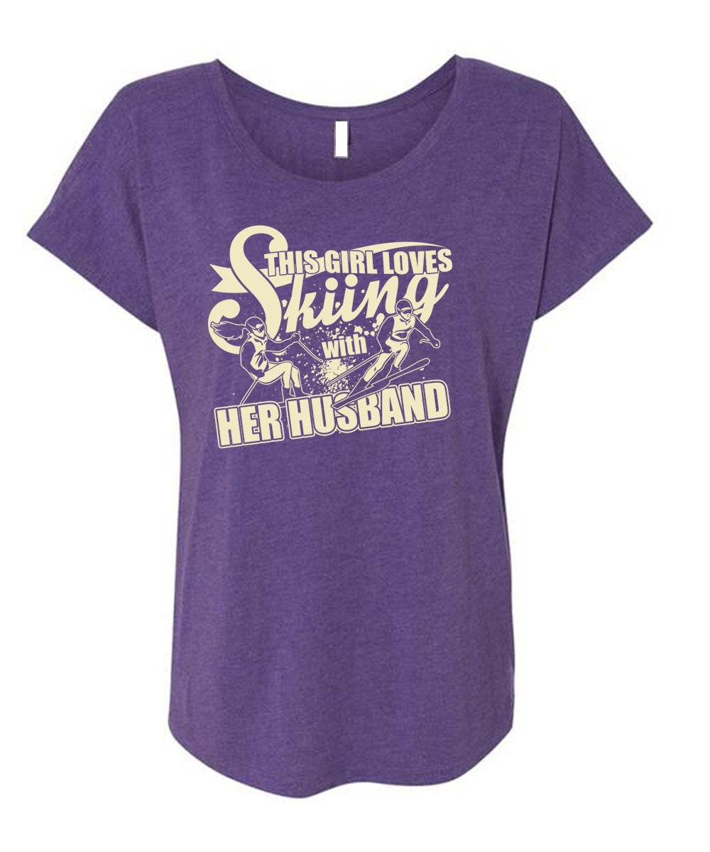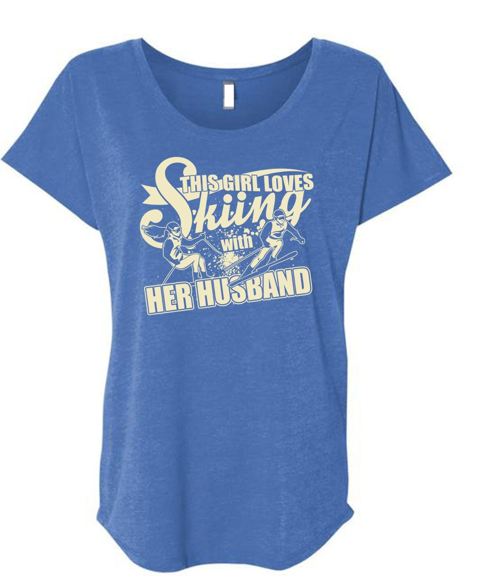 This Girl Loves Skiing With Her Husband T Shirt, Being A Skier T Shirt, Cool Shirt (Ladies' Triblend Dolman Sleeve)
