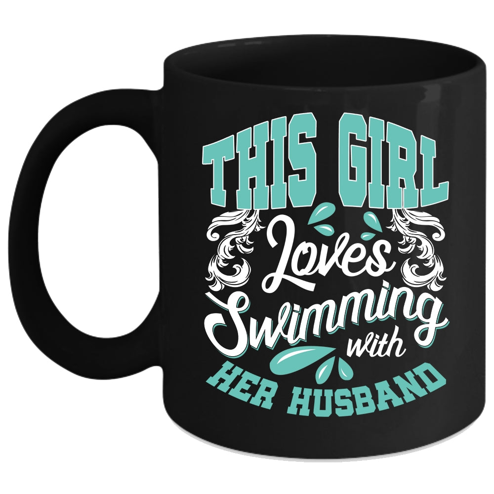 This Girl Loves Swimming With Her Husband Coffee Mug, Couple Coffee Cup