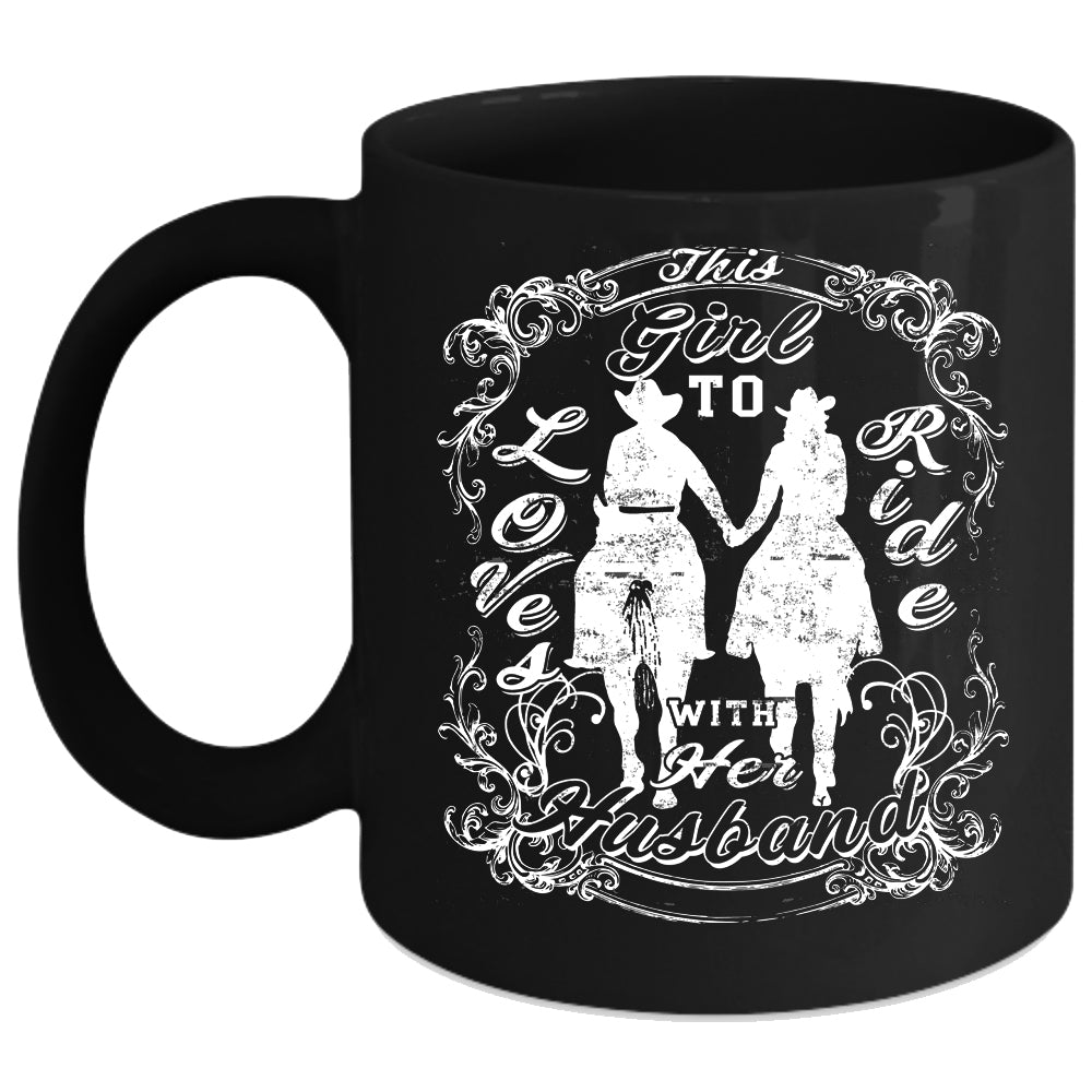 This Girl Loves To Ride With Her Husband Coffee Mug, Couple Coffee Cup
