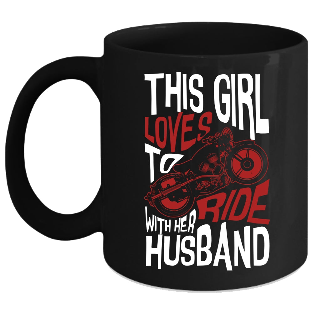 This Girl Loves To Ride With Her Husband Coffee Mug, Cute Loves Coffee Cup