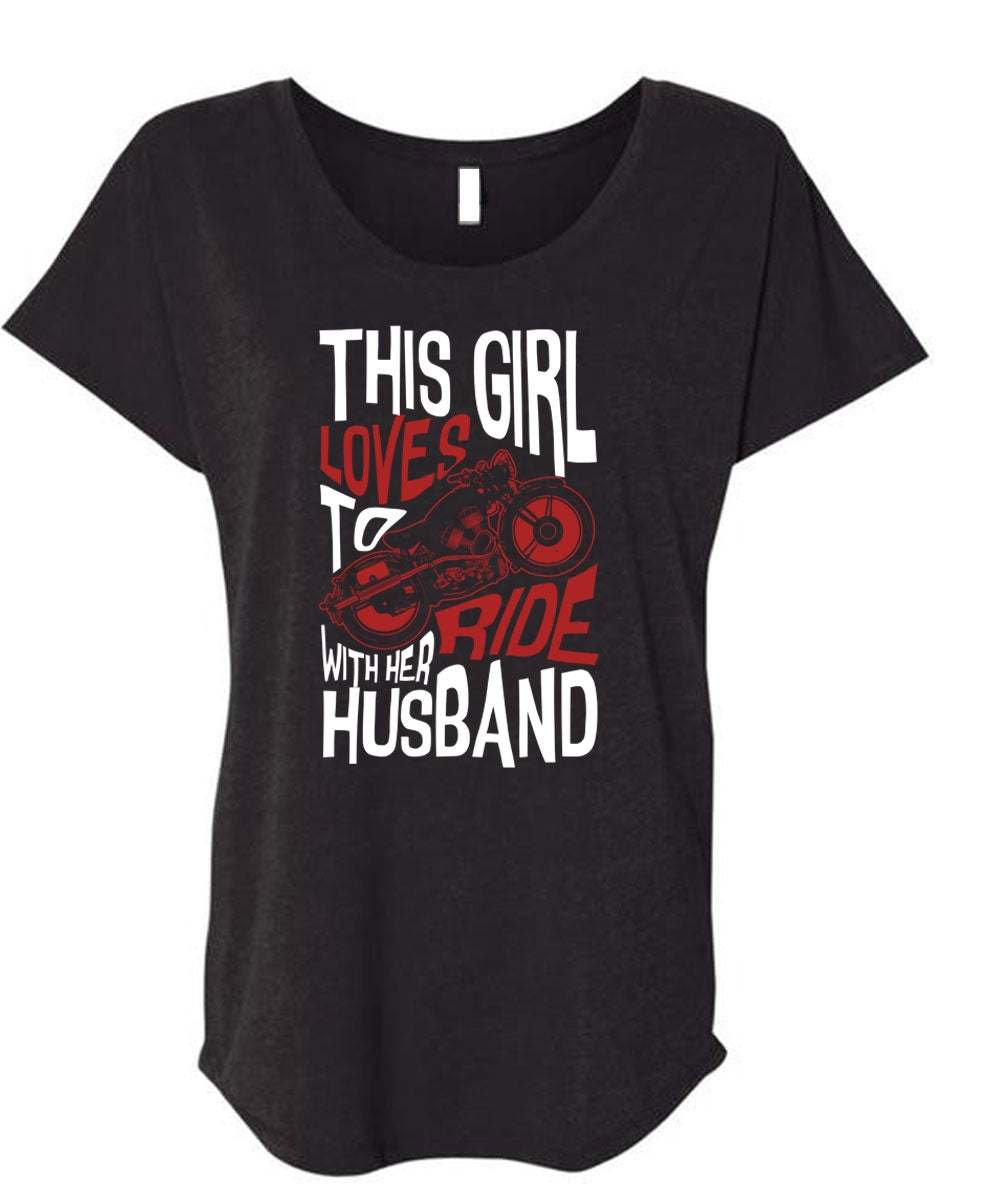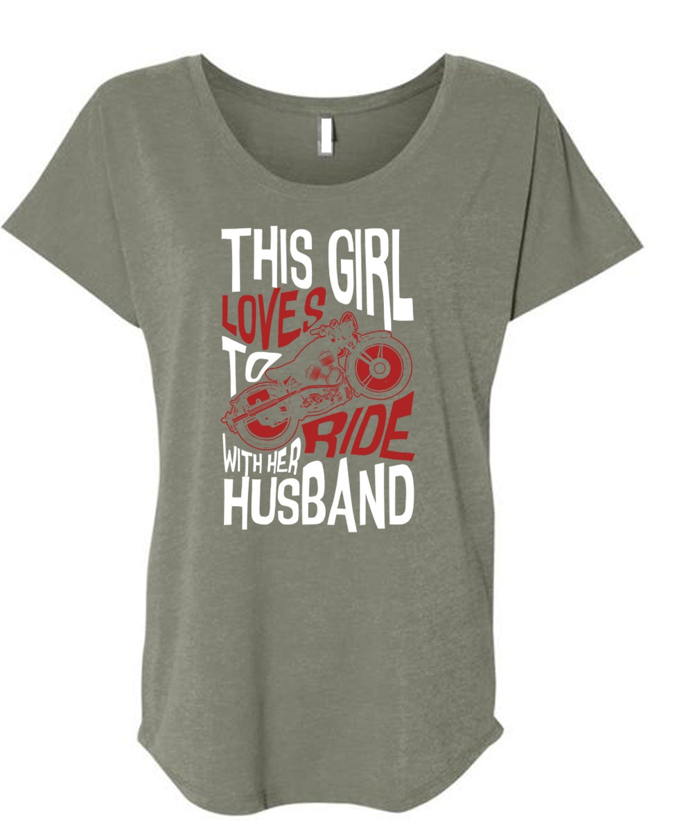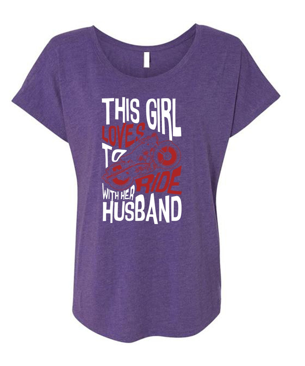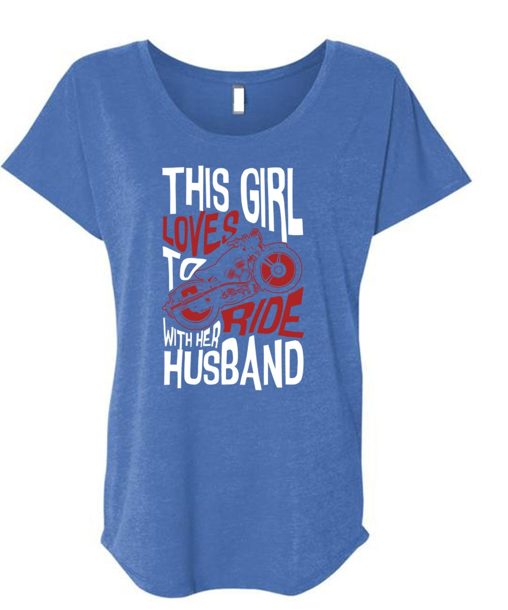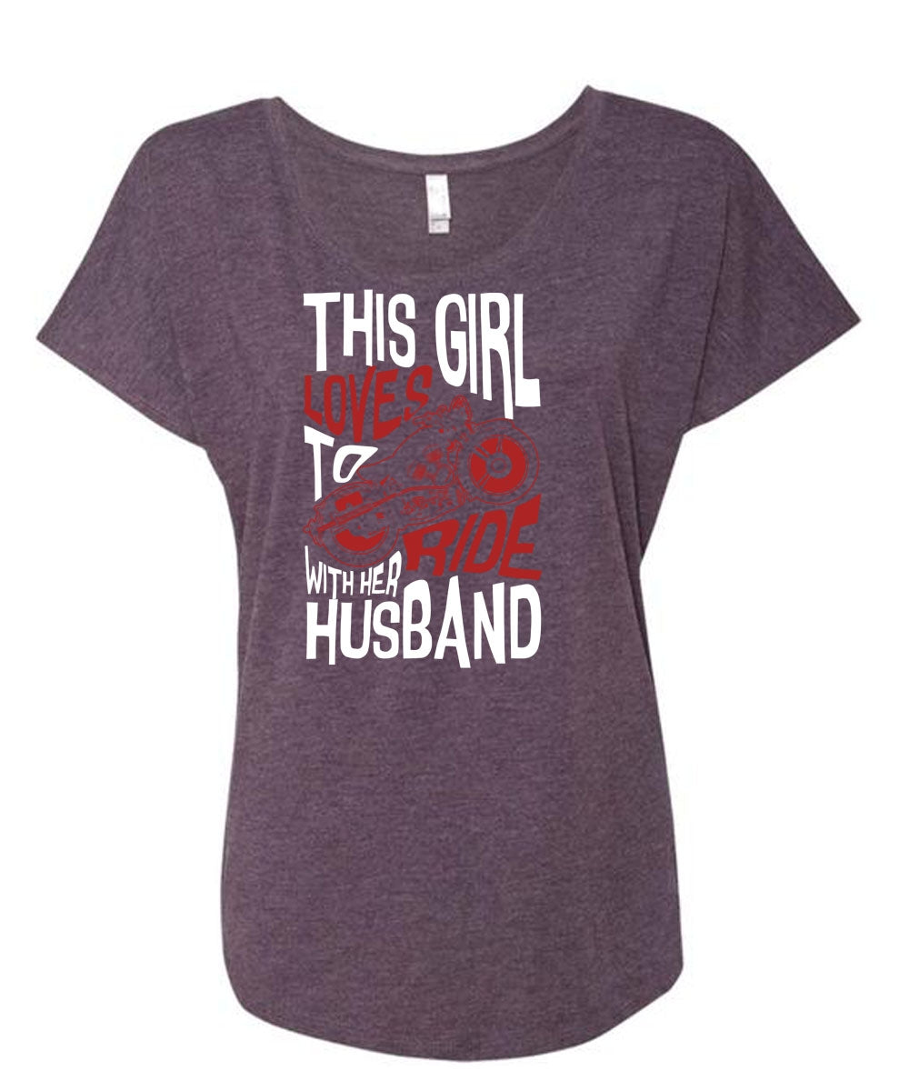 This Girl Loves To Ride With Her Husband T Shirt, Being A Biker T Shirt, Cool Shirt (Ladies' Triblend Dolman Sleeve)