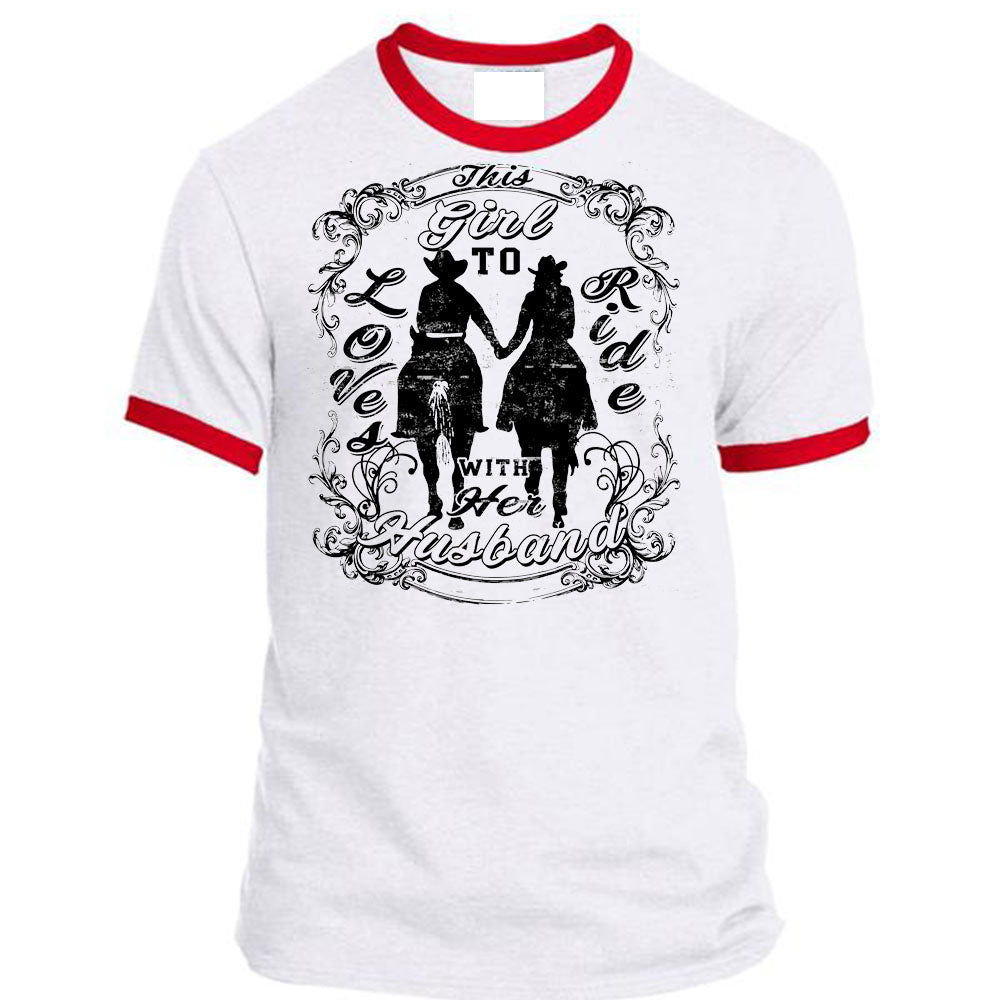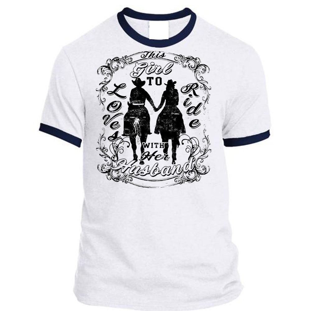 This Girl Loves To Ride With Her Husband T Shirt, Being A Equestrian T Shirt, Awesome T-Shirts