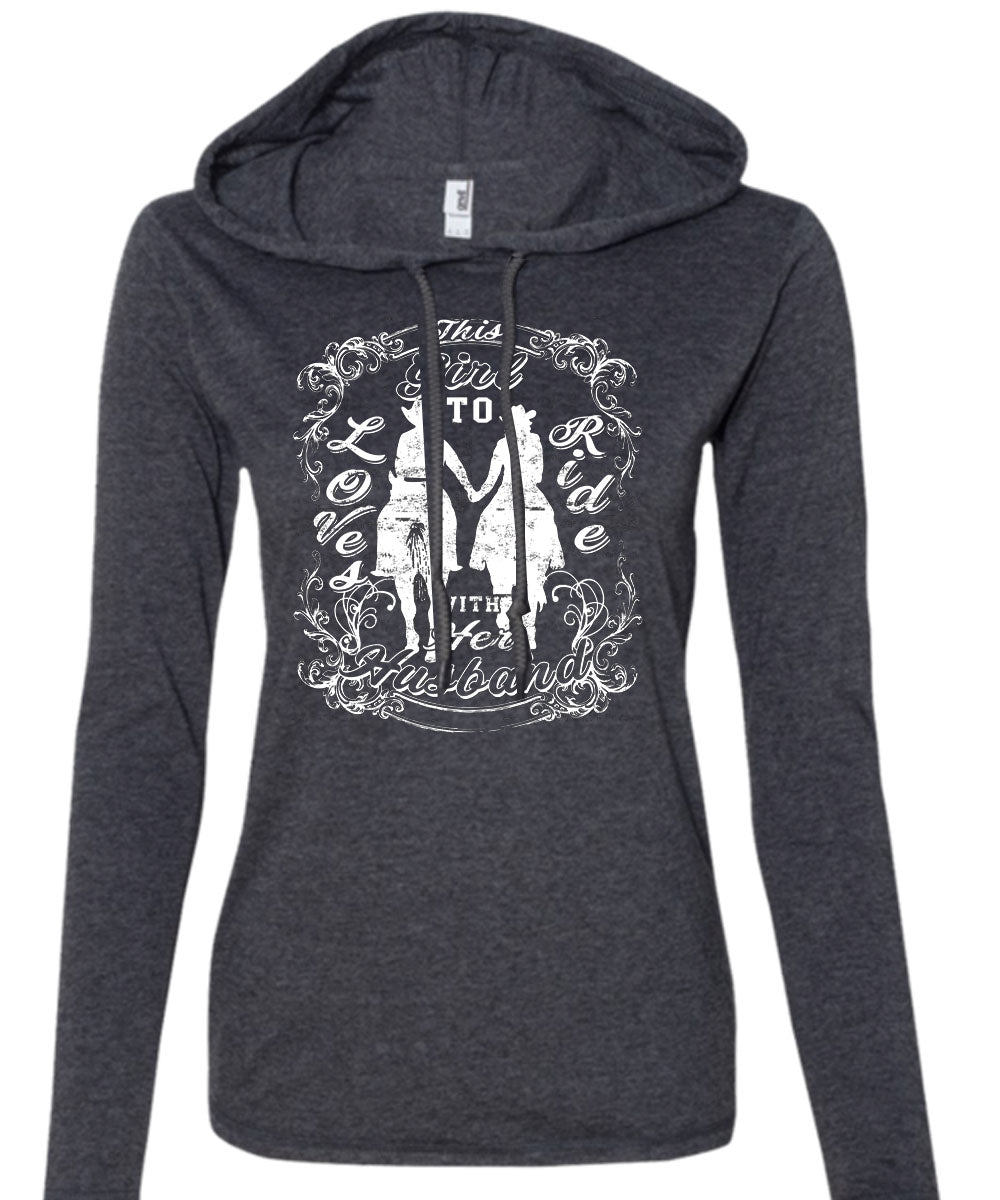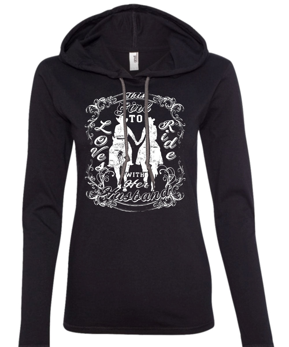 This Girl Loves To Ride With Her Husband T Shirt, I Love Equestrian T Shirt (Anvil Ladies Ringspun Hooded)
