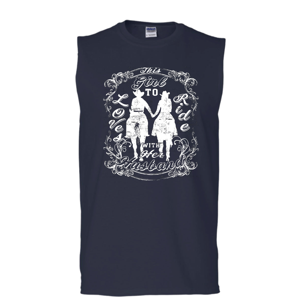This Girl T Shirt, Love To Ride With Her Husband T Shirt, Cool T Shirt (Men's Cotton Sleeveless)