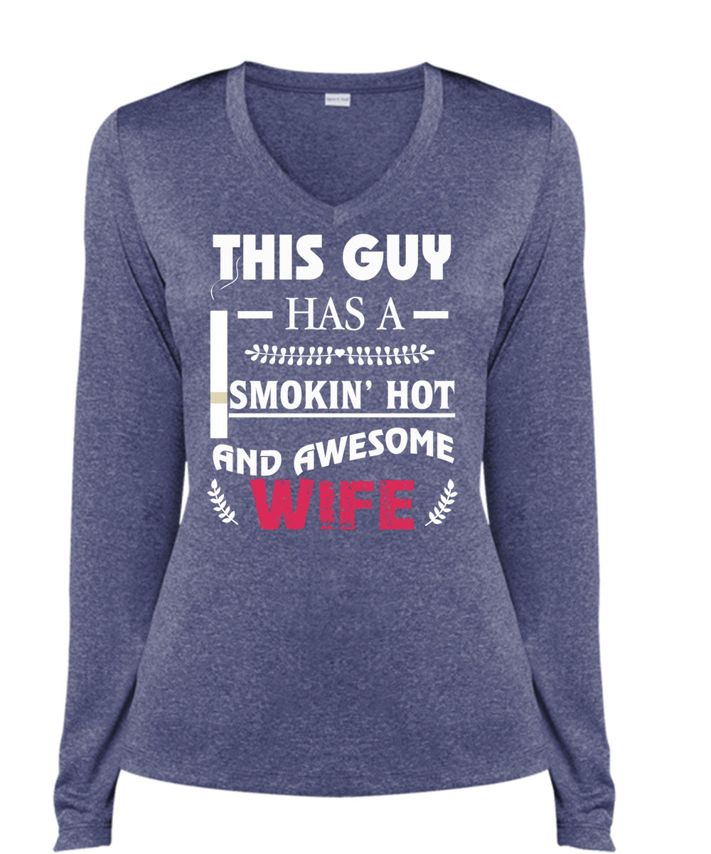 This Guy Has A Smoking Hot And Awesome Wife T Shirt, Being A Husband T Shirt, Cool Shirt (Ladies LS Heather V-Neck)