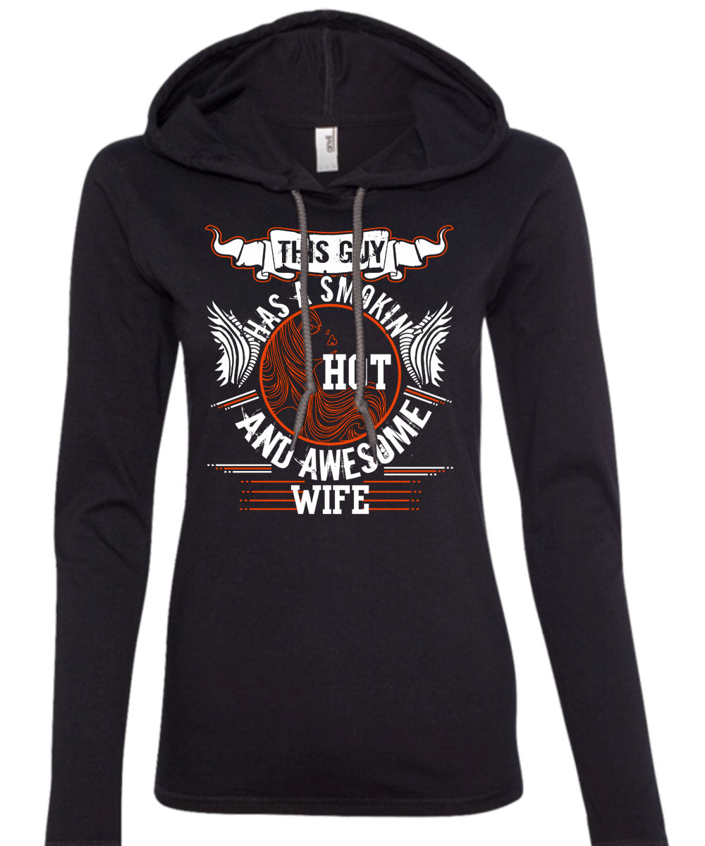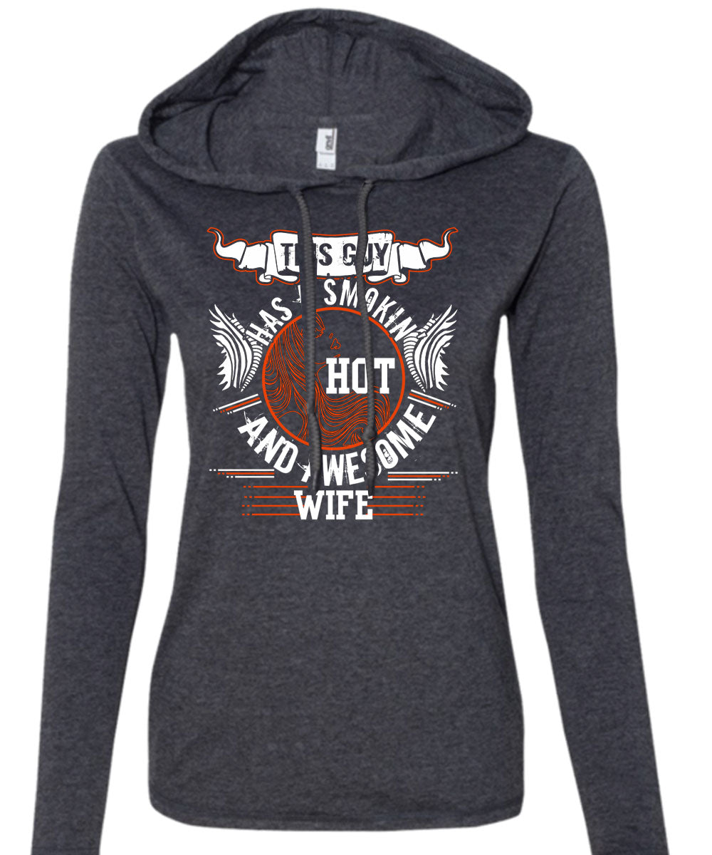 This Guy Has A Smoking Hot And Awesome Wife T Shirt, I Love Husband T Shirt (Anvil Ladies Ringspun Hooded)