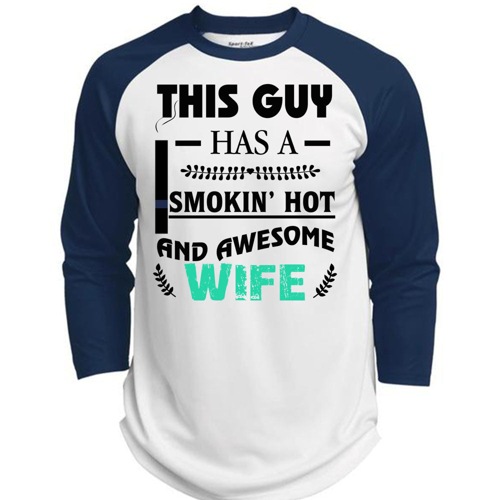 This Guy Has A Smoking Hot And Awesome Wife T Shirt, I Love My Wife T Shirt, Awesome T-Shirts (Polyester Game Baseball Jersey)