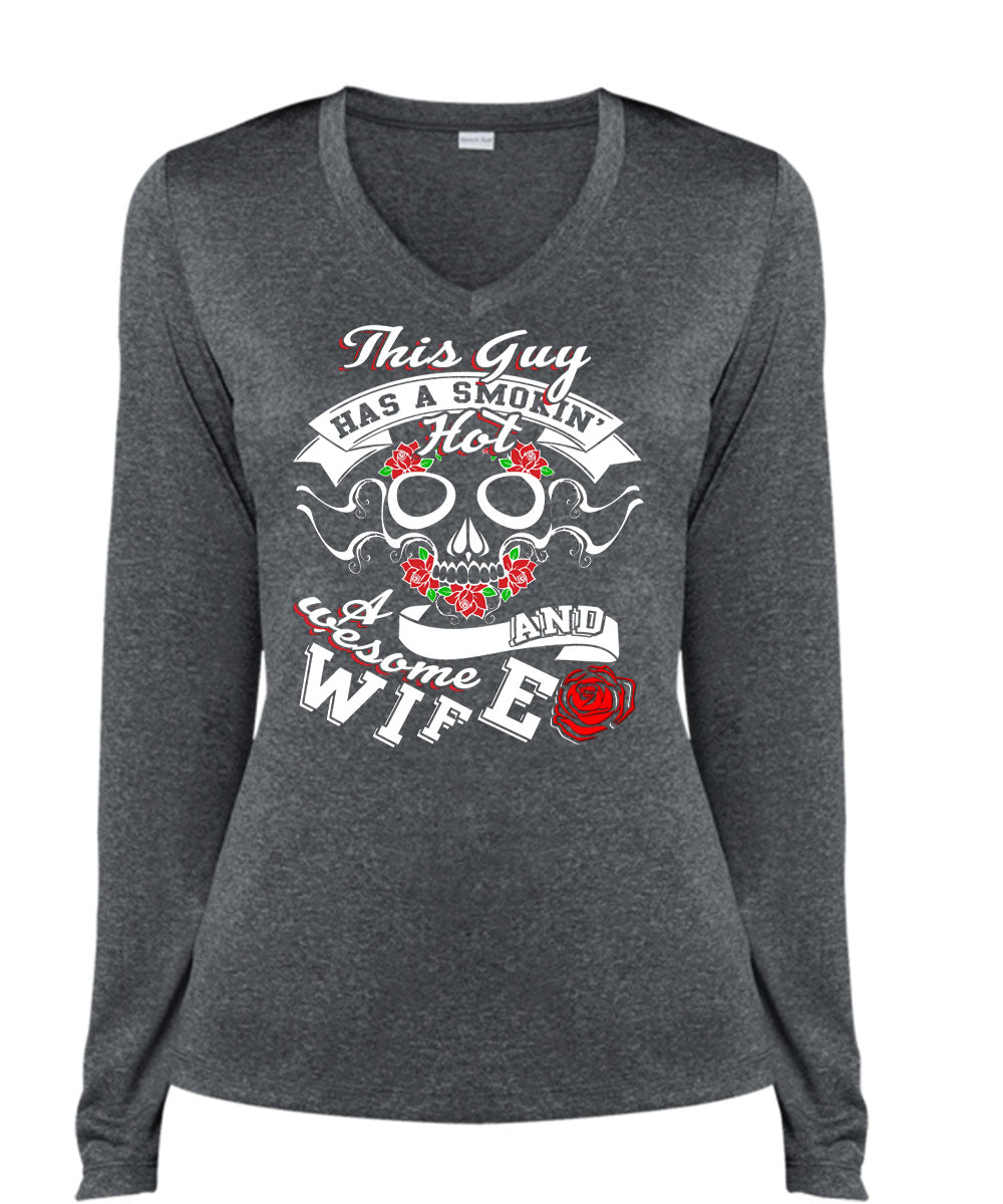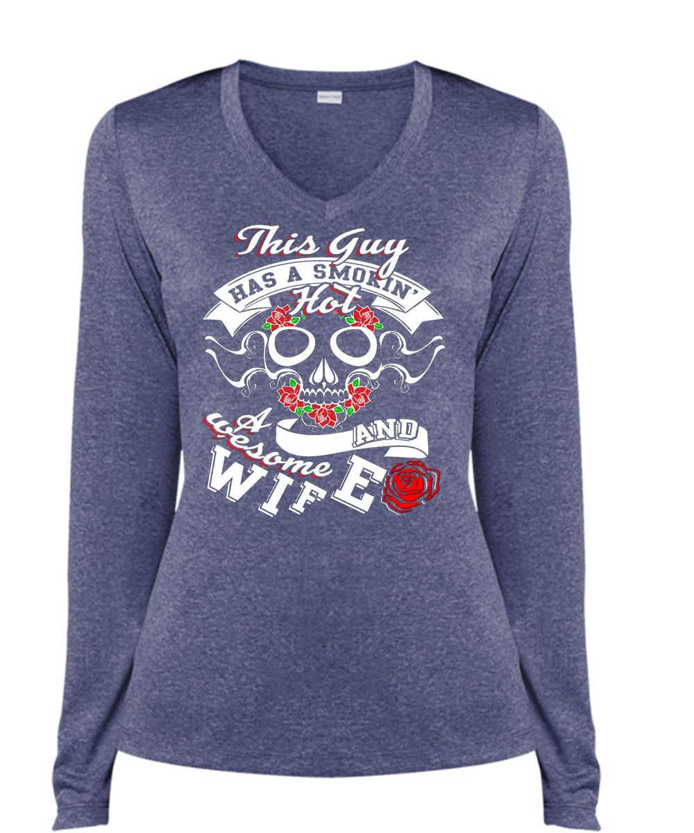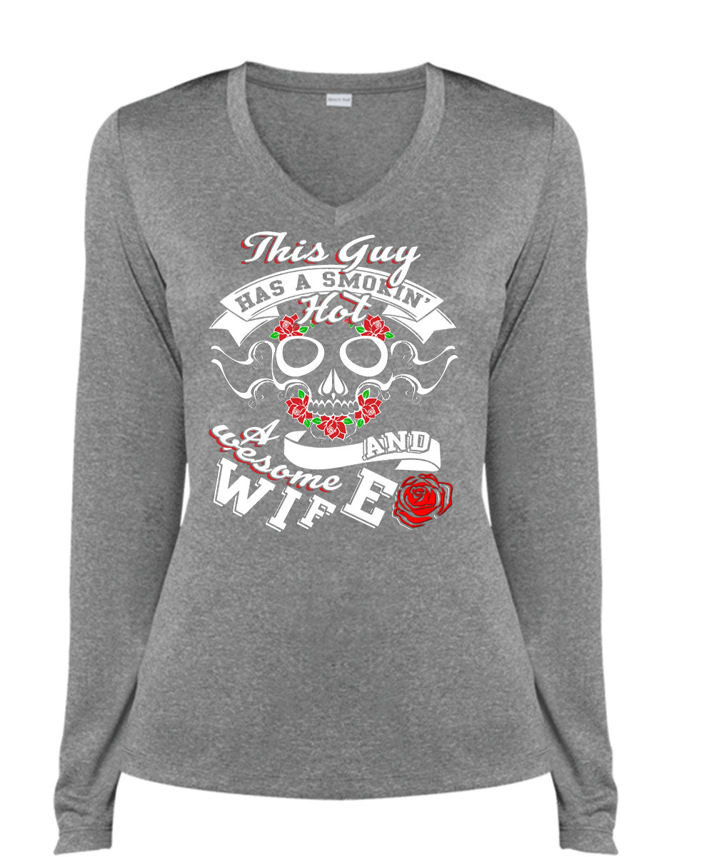 This Guy Has A Smoking Hot Wife T Shirt, Being A Wife T Shirt, Cool Shirt (Ladies LS Heather V-Neck)