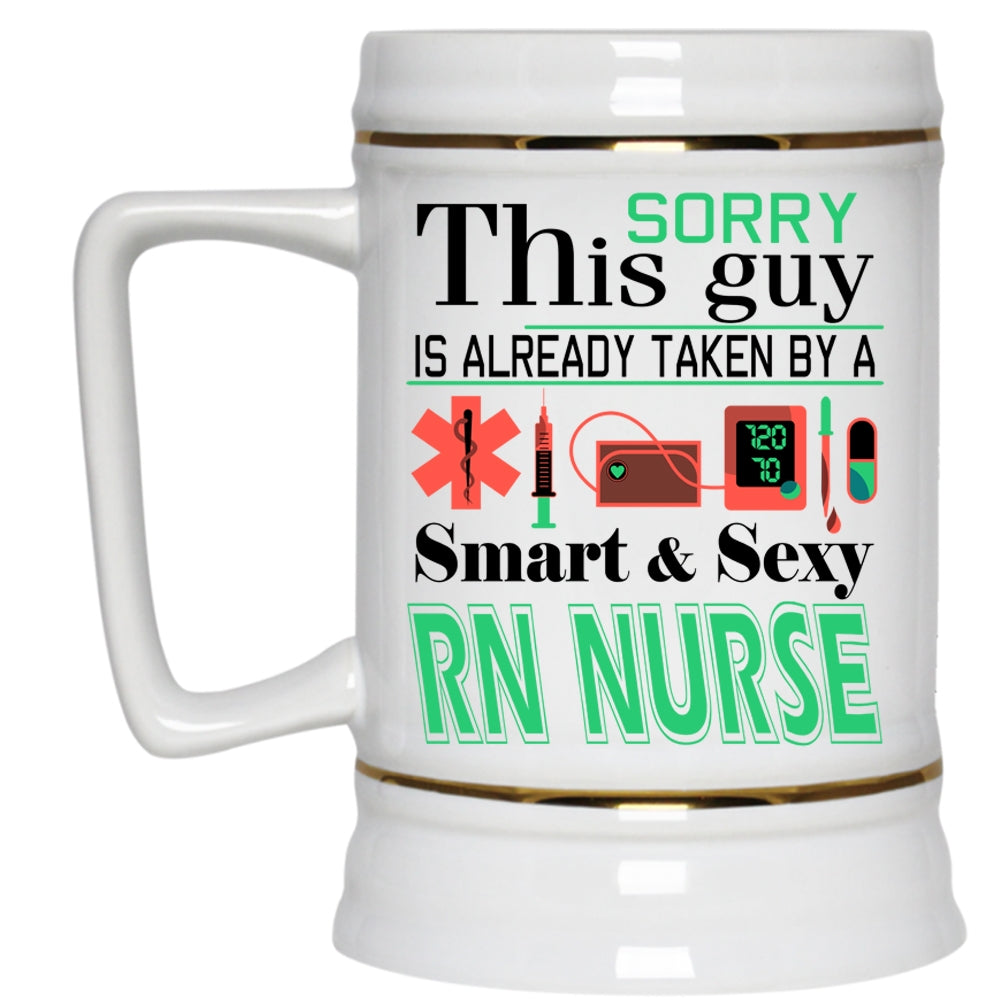 This Guy Is Already Taken By A Smart RN Nurse Cup, Husband Mug (Beer Mug)
