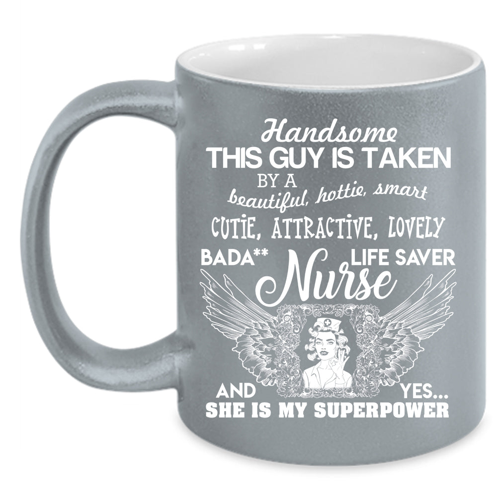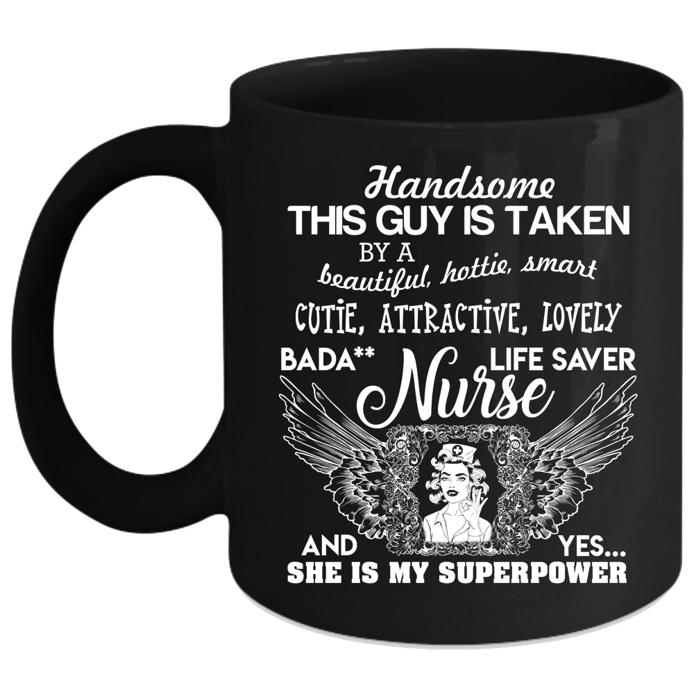 This Guy Is Taken By A Beautiful Nurse Coffee Mug, Handsome Husband Coffee Cup