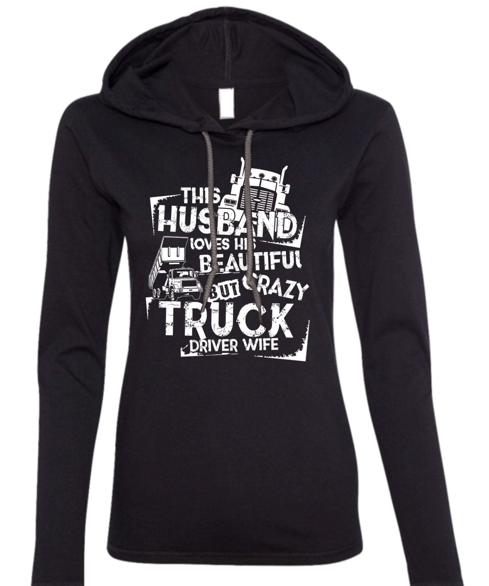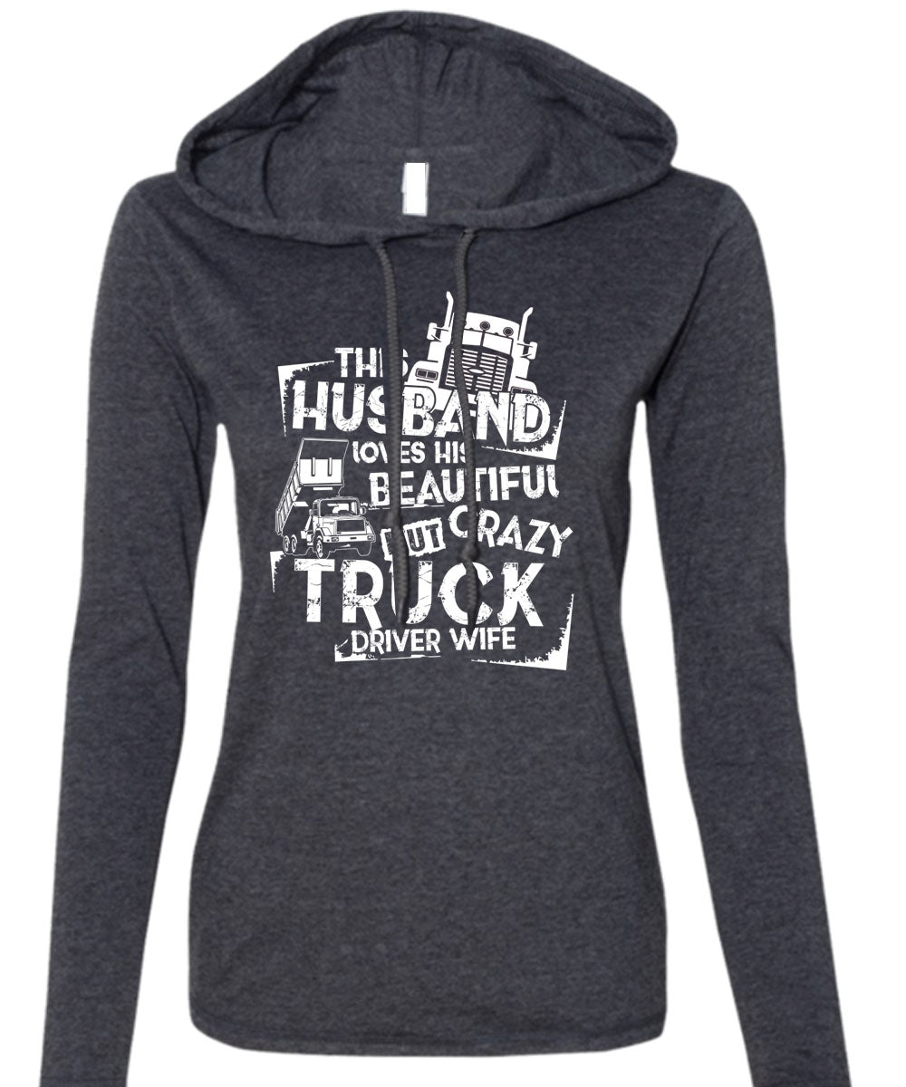 This Husband Loves His Beautiful T Shirt, Crazy Truck Driver Wife T Shirt (Anvil Ladies Ringspun Hooded)