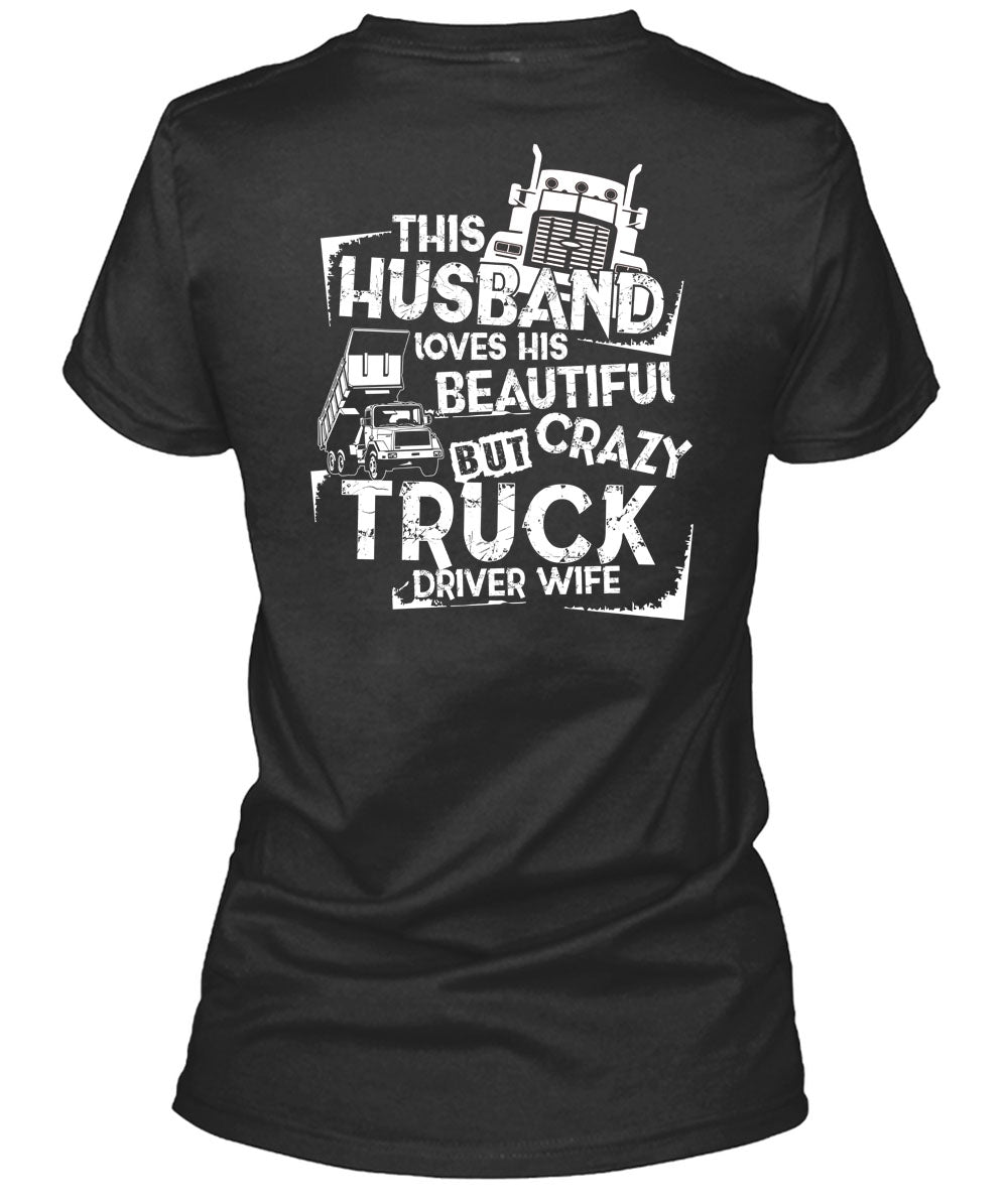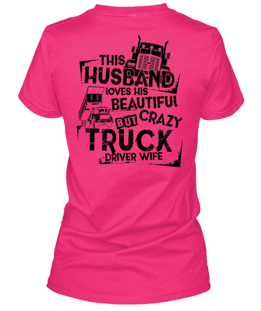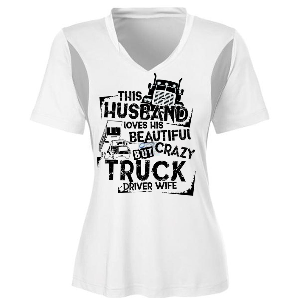 This Husband Loves His Beautiful T Shirt, Crazy Truck Driver Wife T Shirt, Cool Shirt (Ladies LS Heather V-Neck)