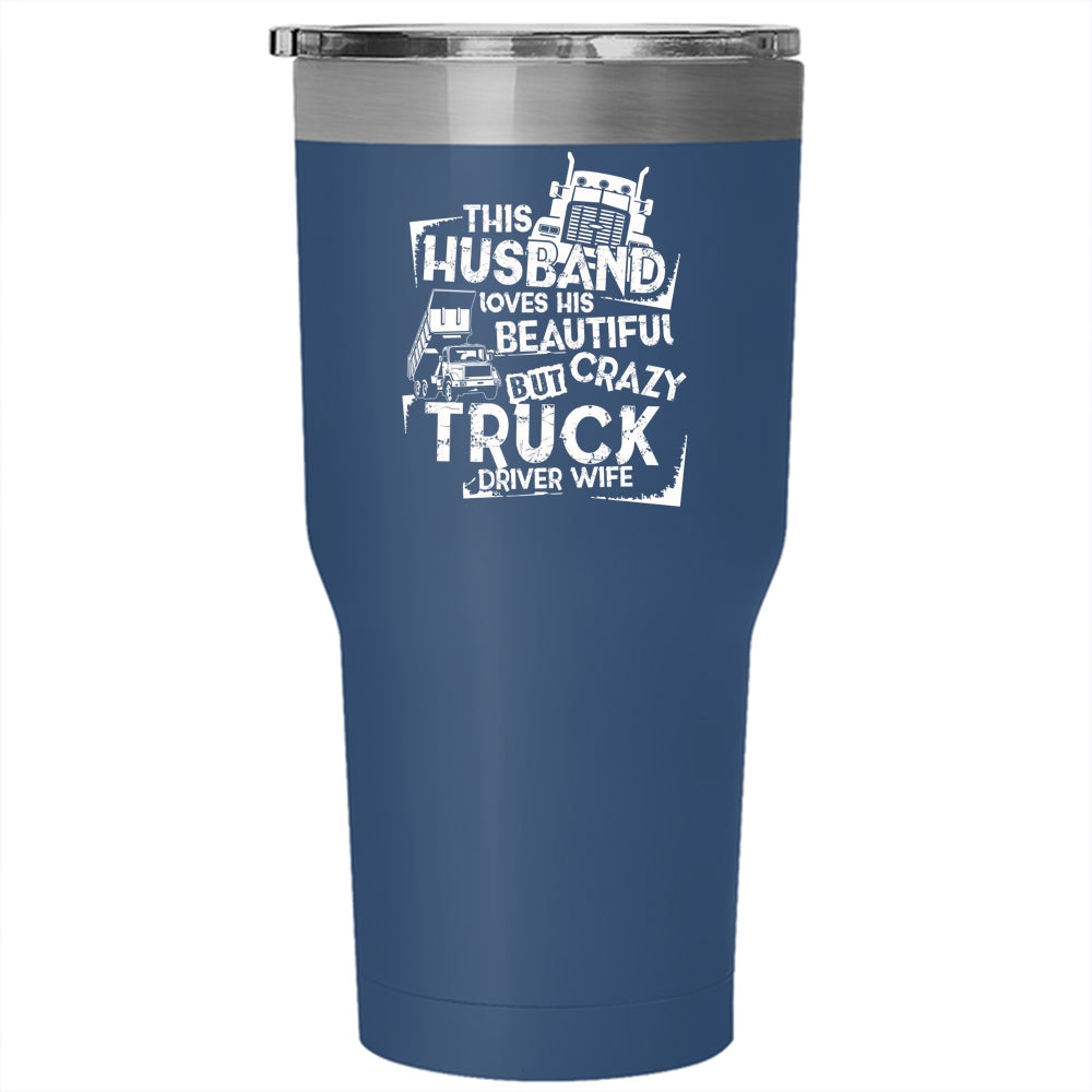 This Husband Loves His Truck Driver Wife Tumbler 30 oz Stainless Steel, Crazy Trucker Travel Mug
