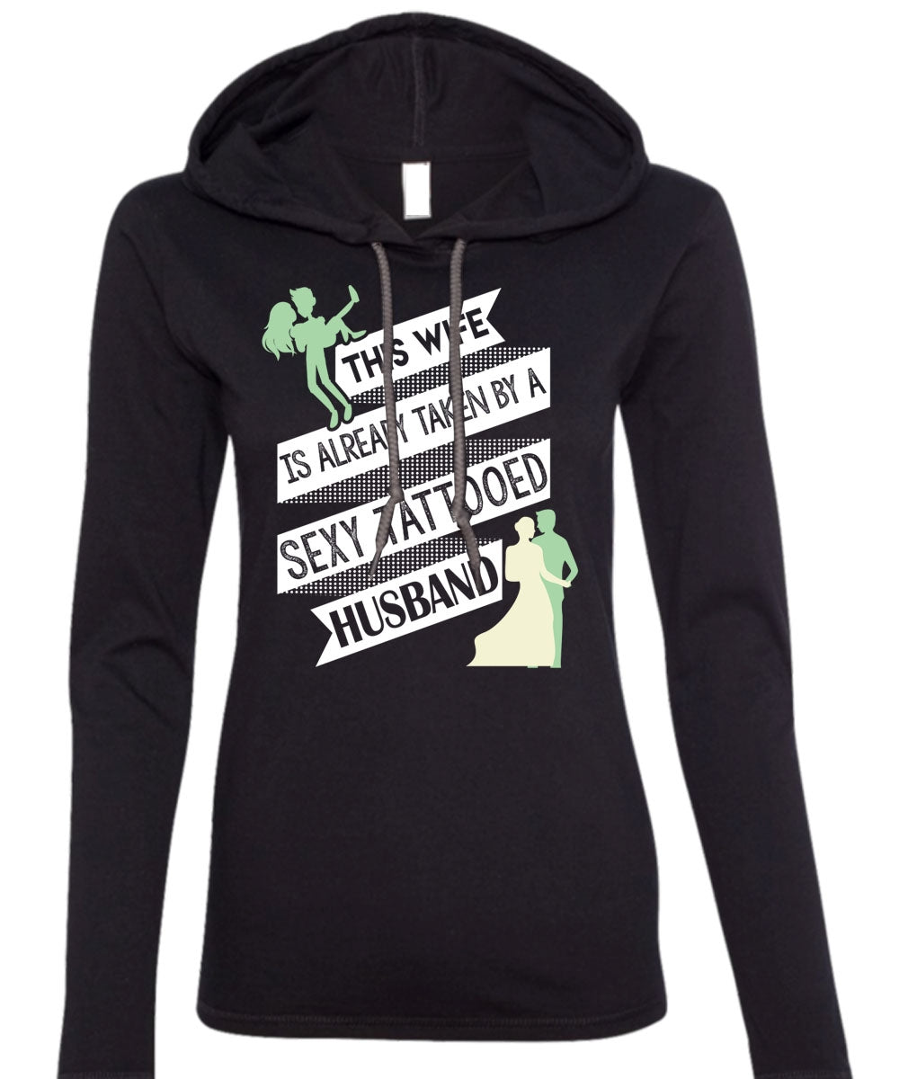 This Wife Is Already Taken By A Tattooed Husband T Shirt, I Love My Wife T Shirt (Anvil Ladies Ringspun Hooded)