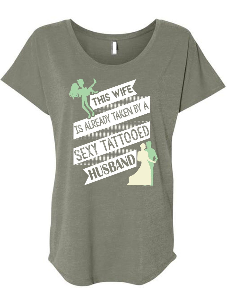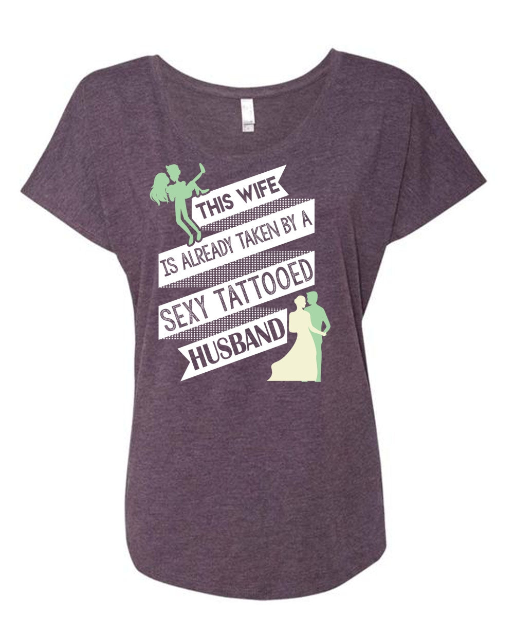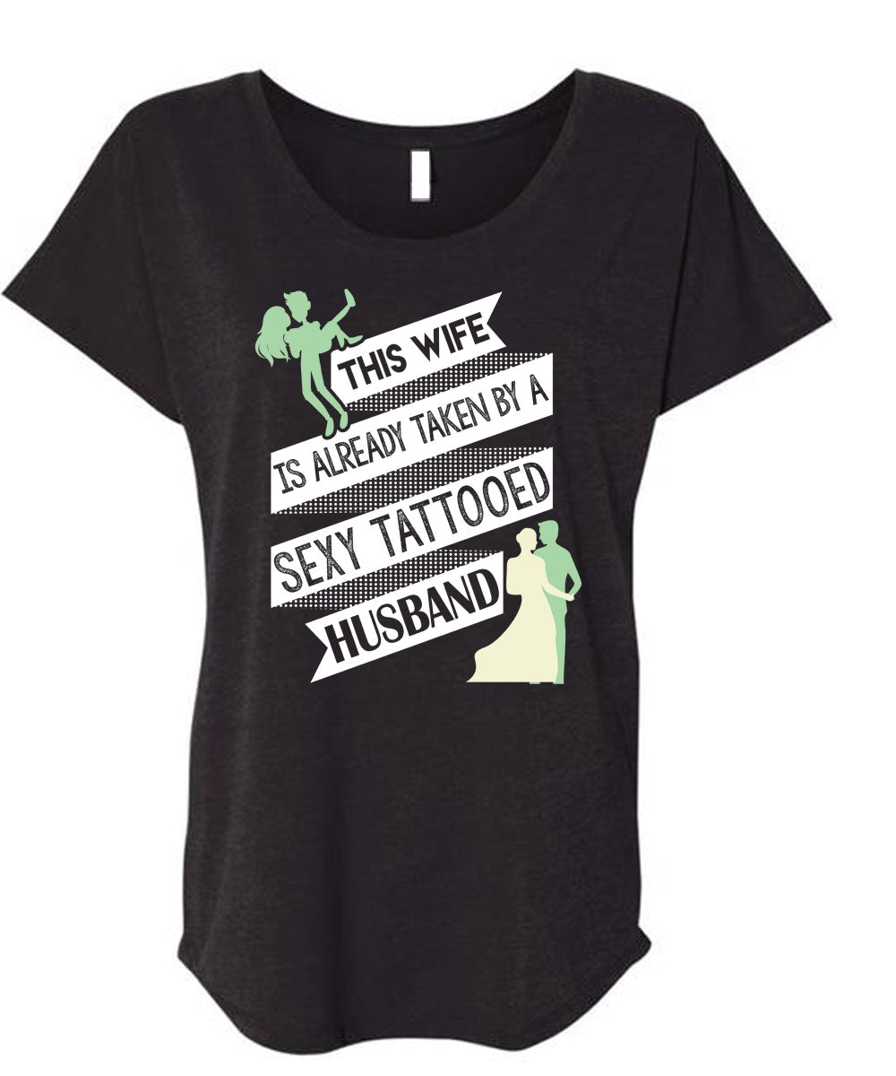 This Wife Is Already Taken By A Tattooed Husband T Shirt, I Love My Wife T Shirt, Cool Shirt (Ladies' Triblend Dolman Sleeve)