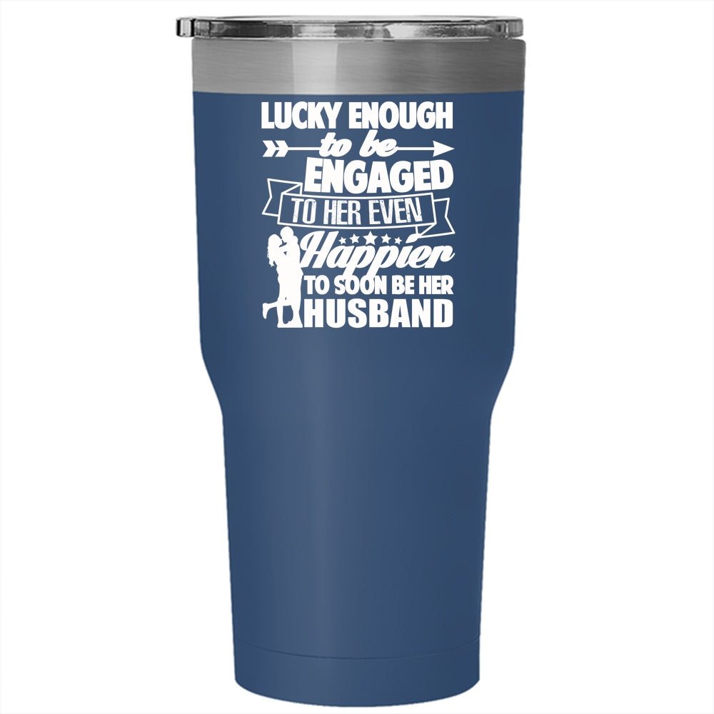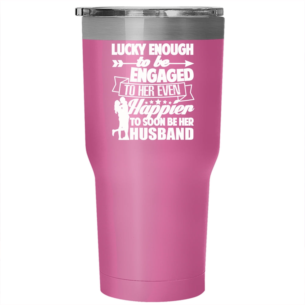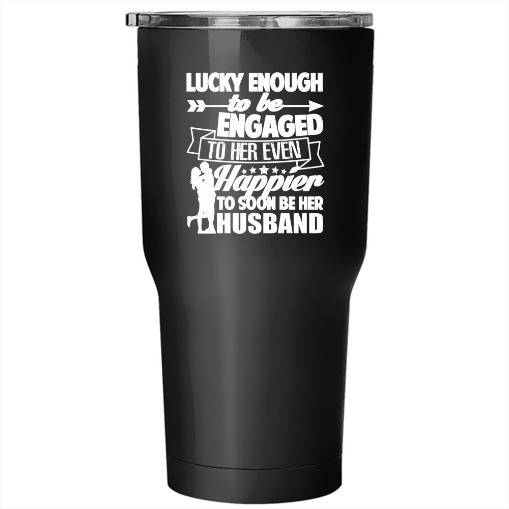 To Be Engaged To Her Even Tumbler 30 oz Stainless Steel, Happier To Soon Be Her Husband Travel Mug