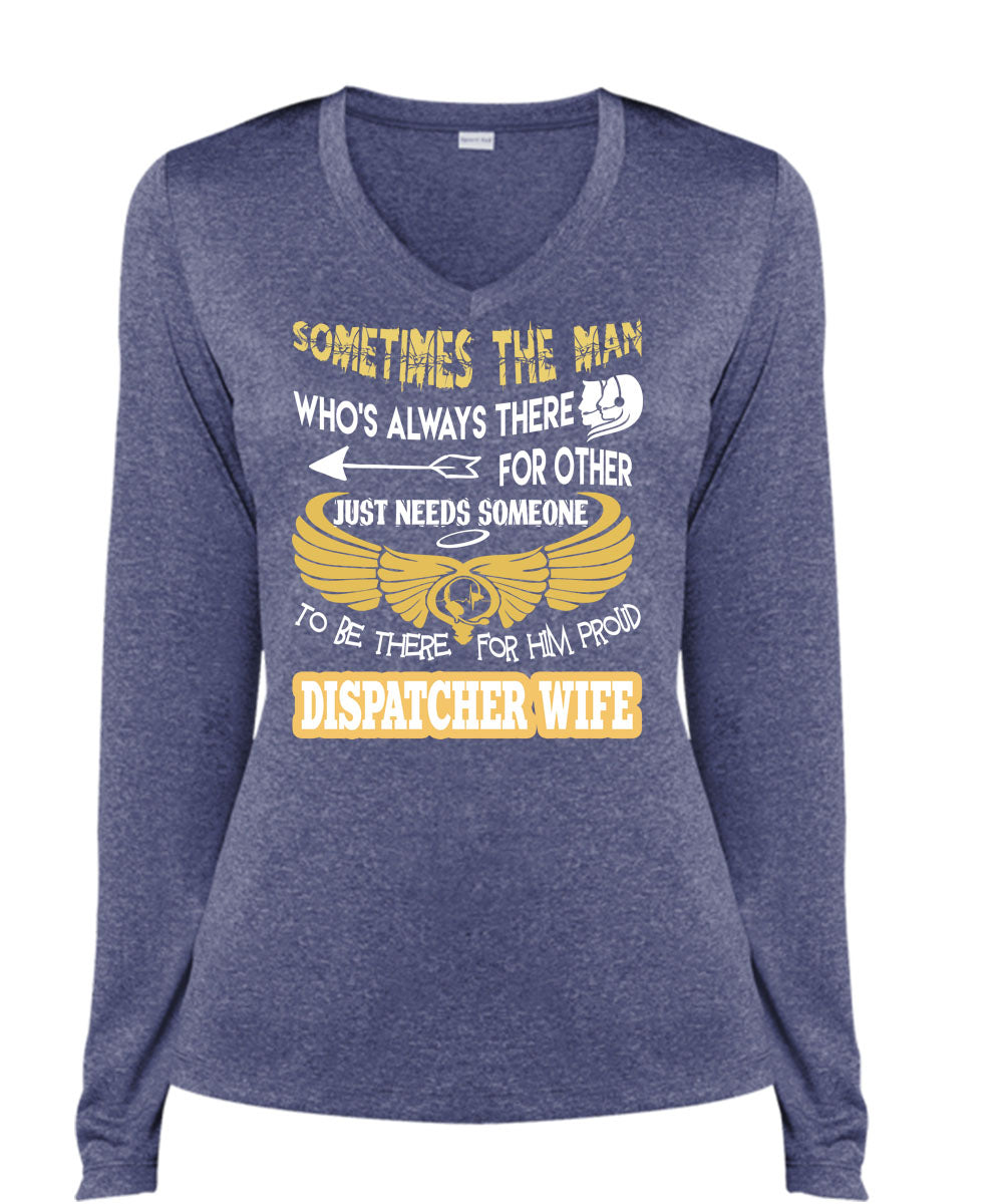 To Be There For Him Proud Dispatcher Wife T Shirt, I Love Dispatcher T Shirt, Cool Shirt (Ladies LS Heather V-Neck)