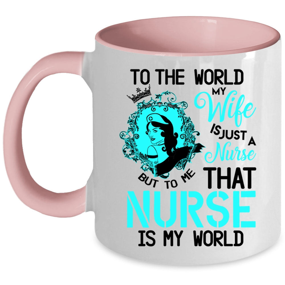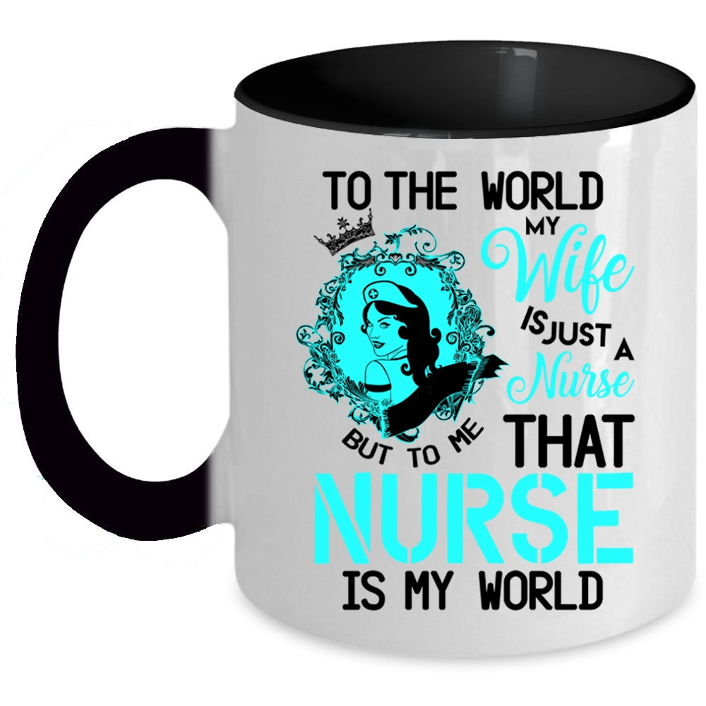 To Me That Nurse Is My World Coffee Mug, To The World My Wife Is A Nurse Accent Mug