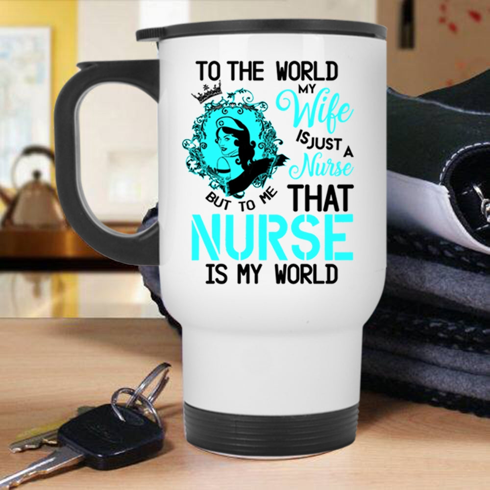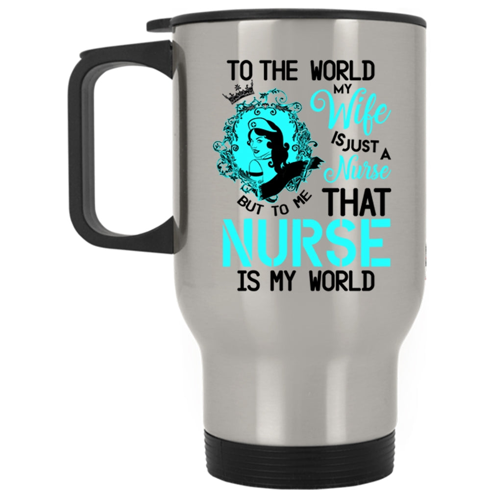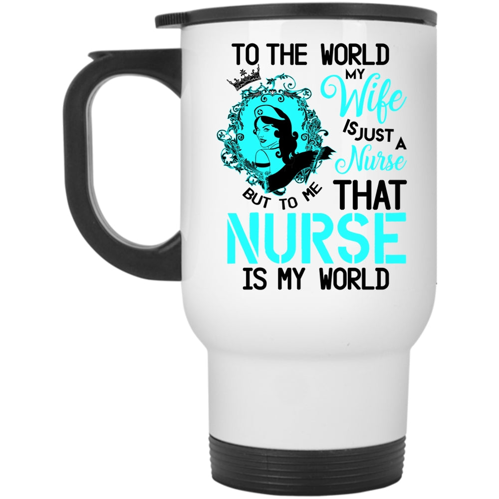 To Me That Nurse Is My World Travel Mug, To The World My Wife Is A Nurse Mug