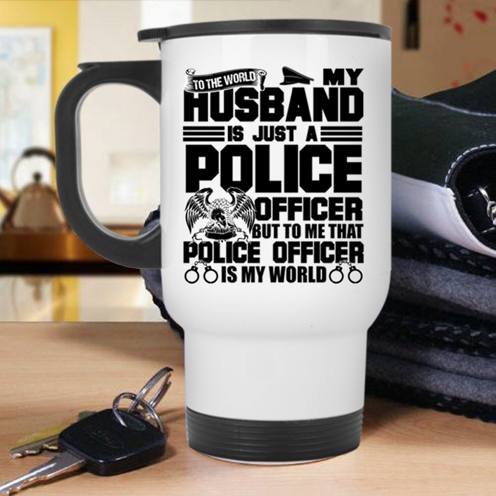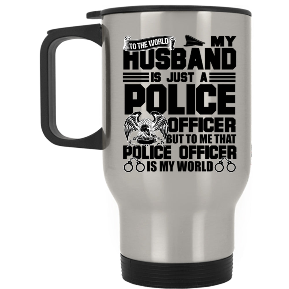 To Me That Police Officer Is My World Travel Mug, My Husband Is Just A Police Officer Mug