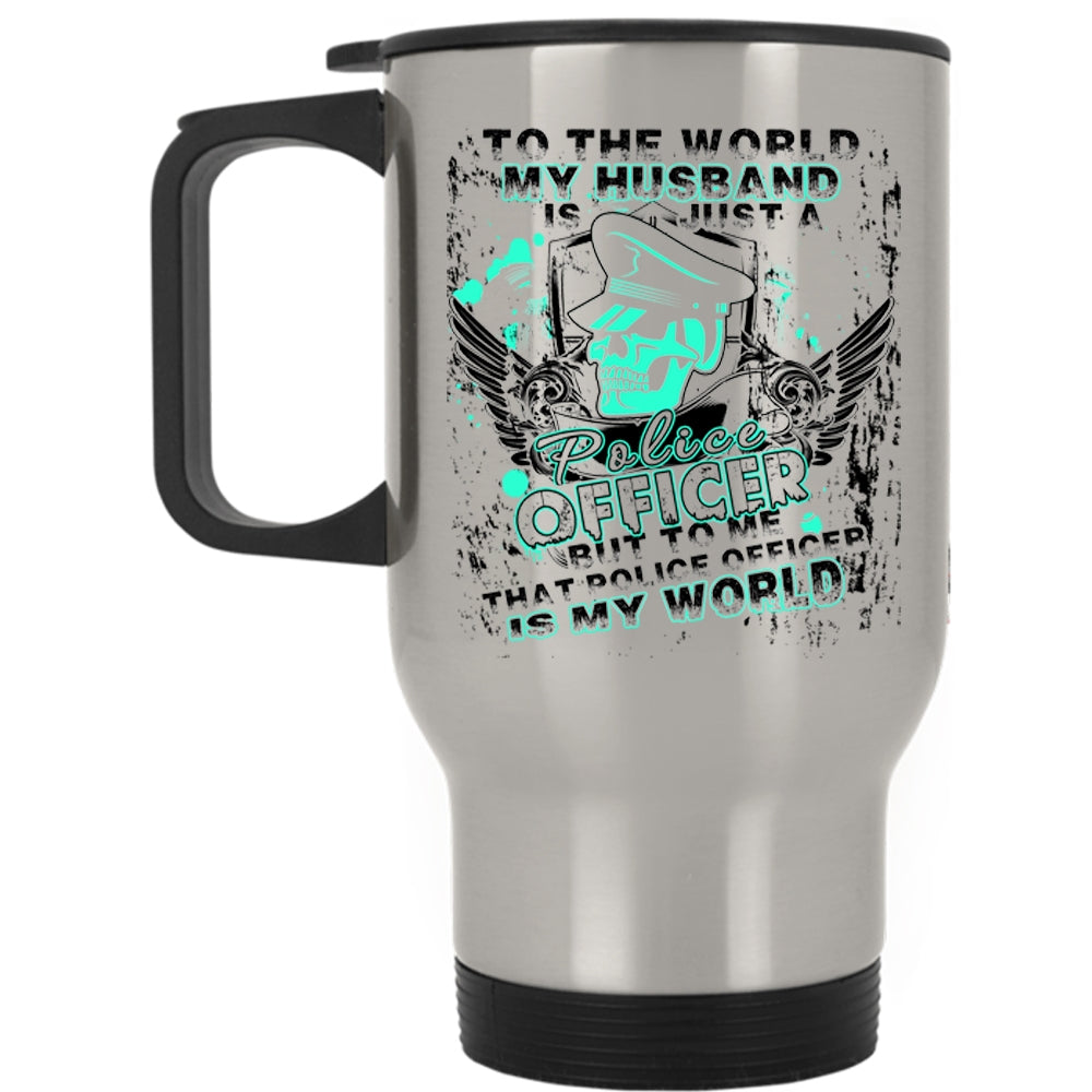 To Me That Police Officer Is My World Travel Mug, My Husband Just A Police Officer Mug